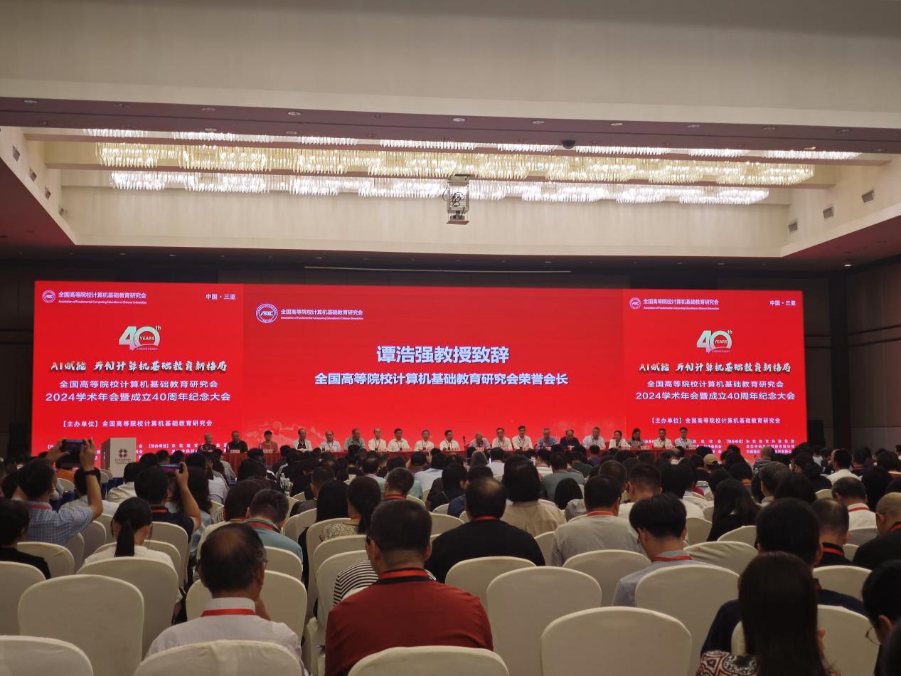 会上,我国著名计算机教育家,全国高等院校计算机基础教育研究会荣誉会长谭浩强出席会议并在开幕式致辞。此次盛会以“AI赋能 开创计算机基础教育新格局”为主题,共同探讨“人工智能+计算机基础教育”的新生态,以及如何借助人工智能技术的力量,为计算机基础教育带来新的变革与发展。会议开幕式上,《中国高等教育计算机基础教育课程体系2024》《计算机教学系列团体标准》《高校计算机基础教学发展指数》等一系列重要成果正式发布,为未来的计算机基础教学提供了科学、系统的指导。