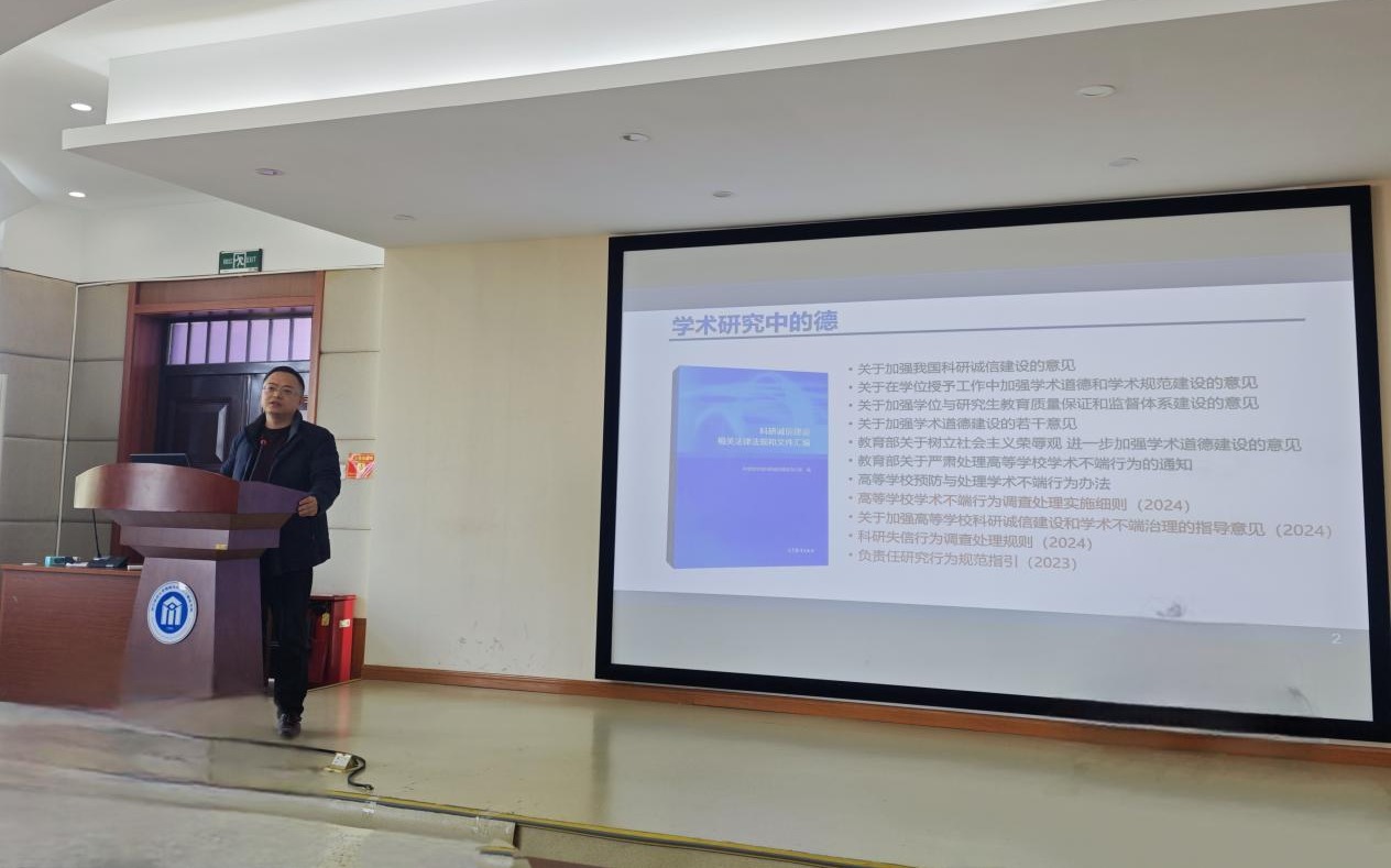 林剑教授深入浅出地阐述了科研诚信的重要性,强调其不仅是学术发展的基石,更是高校教师职业道德的核心要求。他结合国内外典型学术不端案例,剖析了学术造假、抄袭剽窃等行为的严重后果,让教职工们深刻认识到坚守科研诚信的必要性。在讲解过程中,林剑教授详细解读了科研诚信和学术不端相关政策法规,为大家在日常科研工作中如何规范行为提供了明确指导。
