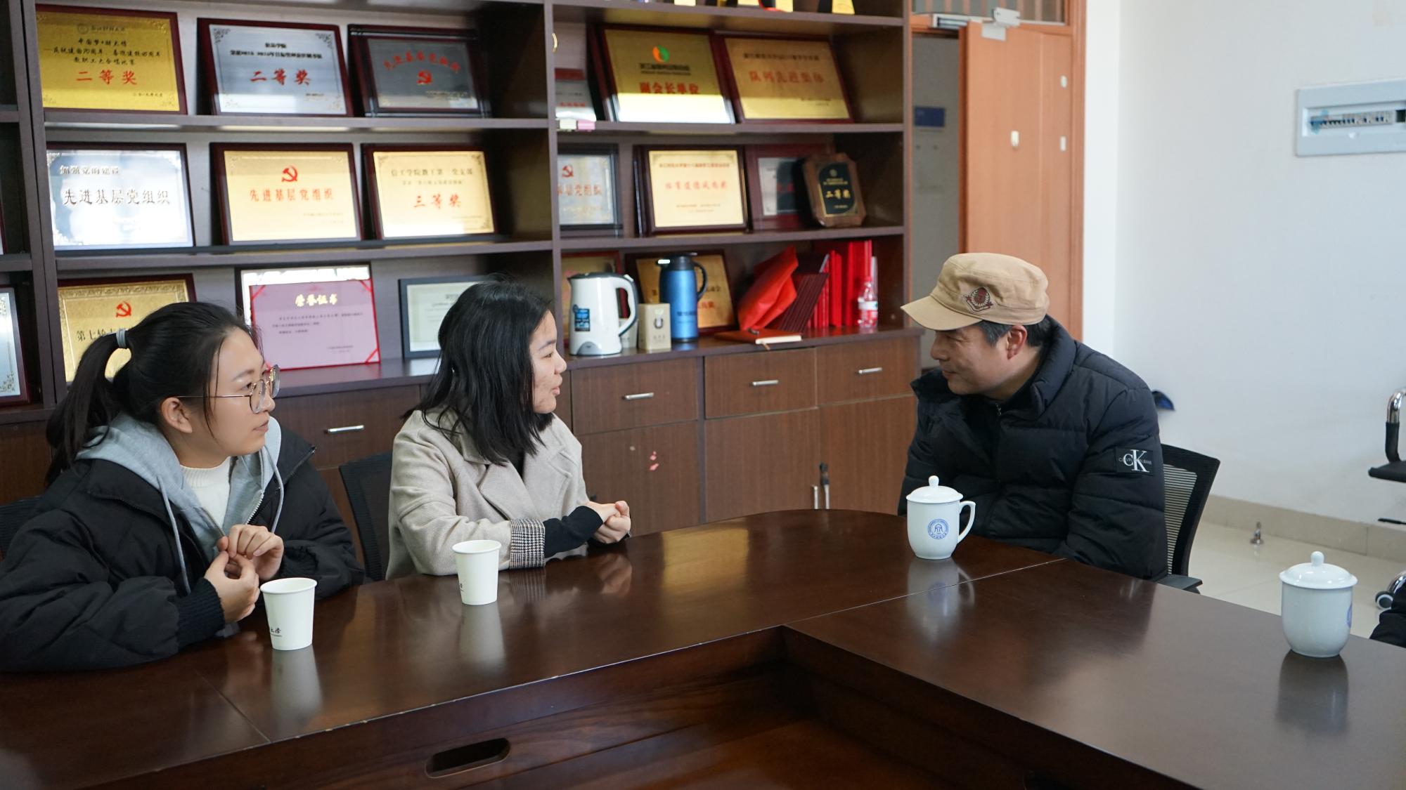 王奎泉副校长与党员代表进行了亲切地交流,详细了解了他们在校工作、学习、生活情况,得知两名学生党员代表刚刚结束研究生入学考试笔试,王校长向两位同学提出了许多复习建议,他鼓励大家要珍惜时间,积极准备复试,争取更好成绩。
