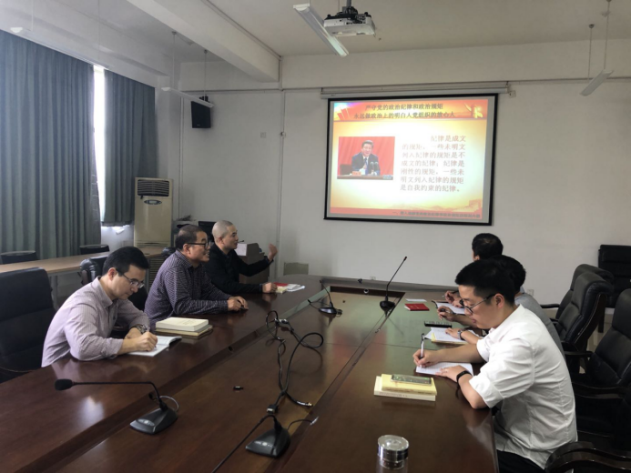 为强化党员干部政治纪律和政治规矩意识,深入推进“不忘初心、牢记使命”主题教育,2019年10月24日,信息管理与工程学院教工党支部在9404开展主题教育“严守政治纪律和政治规矩”专题学习研讨会。