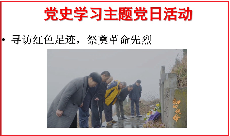 518日,成人视频 教工第一党支部在9506召开了“礼赞百年心向党”党史学习主题党日活动。会议由支部书记朱凌主持,支部党员老师参会学习。
