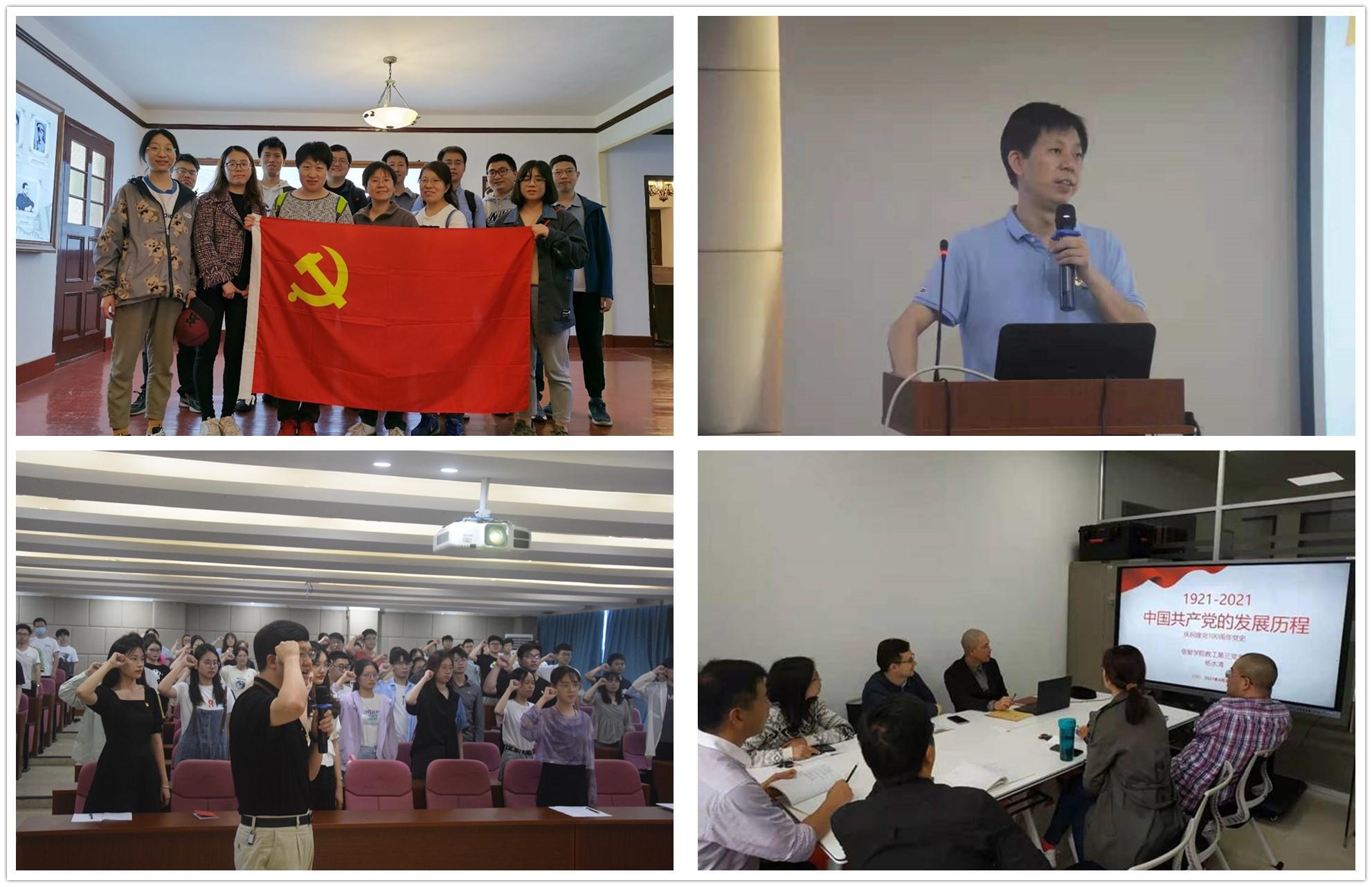 学院党委以“三会一课”为抓手,努力推动师生党员在学党史中锤炼党性修养。组织开展“寻访党史印记”主题党日活动,在白云山馆,毛泽东主席下榻处等红色圣地,寻访党史印记。组织开展党员集体重温入党誓词暨“党史学习教育”专题党课。学院党委班子和各党支部书记纷纷深入党员群众讲党课,各党支部结合党史学习教育开展多形式主题党日活动。
