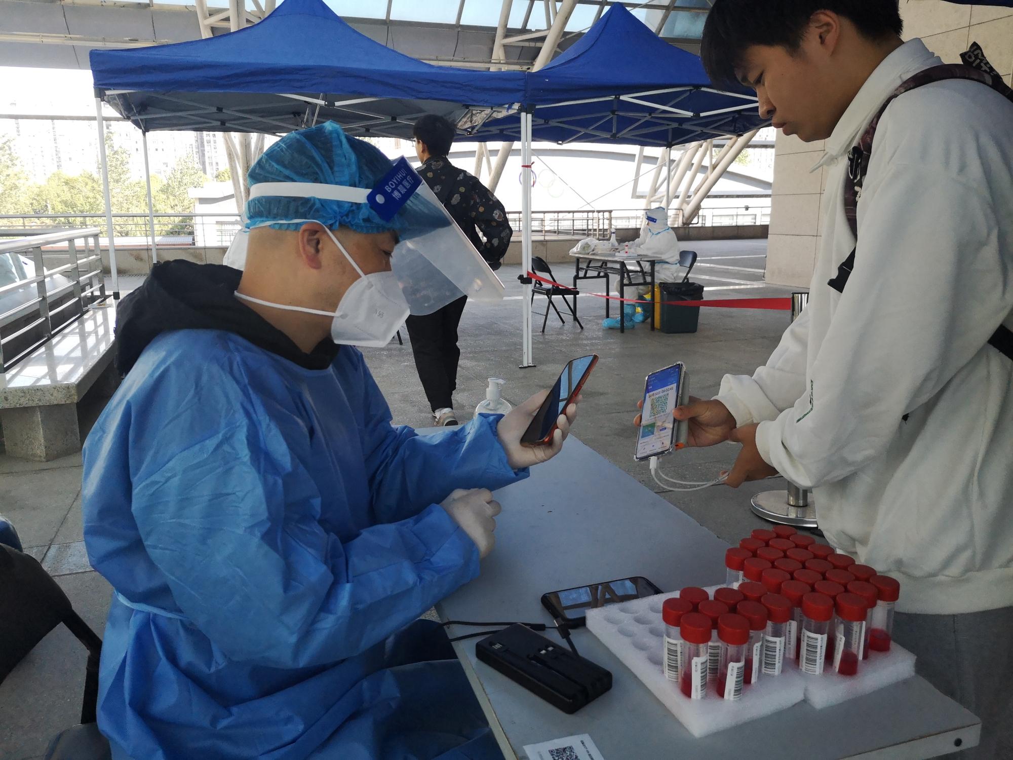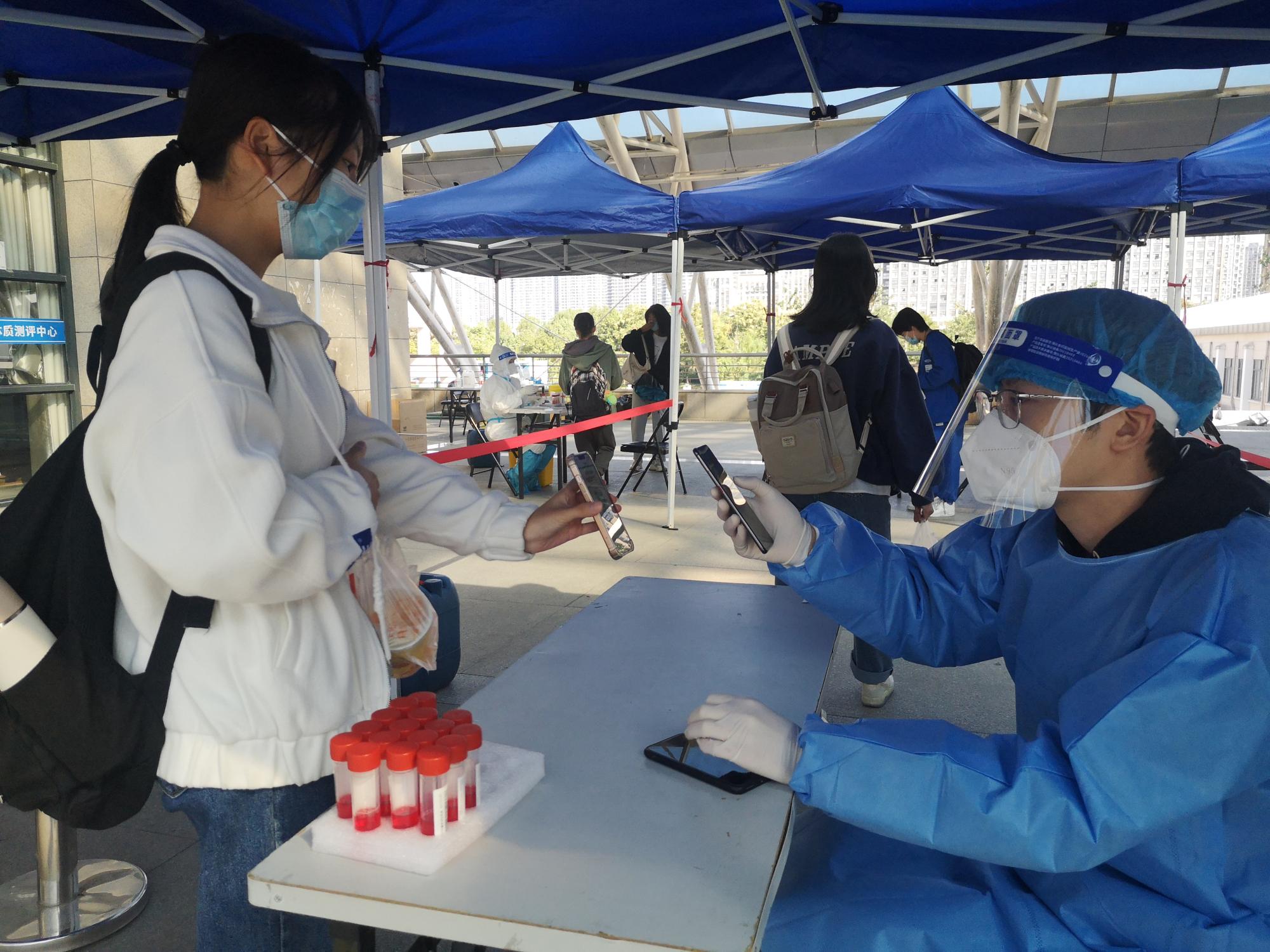 清晨,当我们还在洗漱、吃早饭时,信息管理与人工智能学院党委副书记田聪、教工第二党支部党员徐吉锋、教工第三党支部书记杨水清、教工第三党支部党员姜海银、学生第一党支部书记马硕、学生第二党支部书记洪宝华、学生第四党支部书记徐军军等教师党员已经穿上防护服,在学校各核酸采样点准备就位,为前来进行核酸检测的师生登记信息、维持检测现场秩序。为了做好检测工作,他们通过减少早餐汤水摄入的方式避免工作过程中上厕所,连续4小时不间断地为全校15000余名师生完成核酸检测。