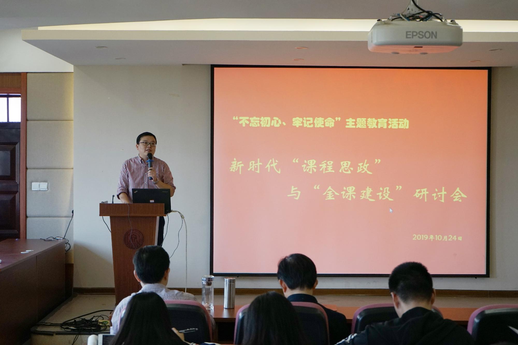 在课程思政和“金课”建设方面的总体情况和所取得的阶段性成果。他表示学院将围绕“立德树人”这一中心任务,将课程与思政无缝衔接、巧妙融合,通过教师的“传道、授业、解惑”,达到丰富课堂内容、活跃课堂气氛、提高人才培养质量的目标。