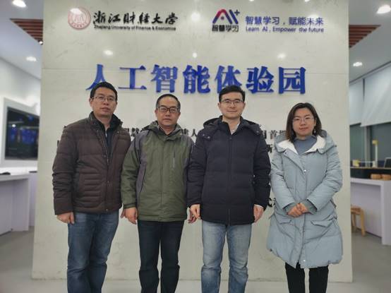 在AI+经管特色的人工智能体验园建设特色,前来学习考察。双方围绕着高校人工智能专业的人才培养,实验室建设,实验教学与管理等内容展开了深入的交流。