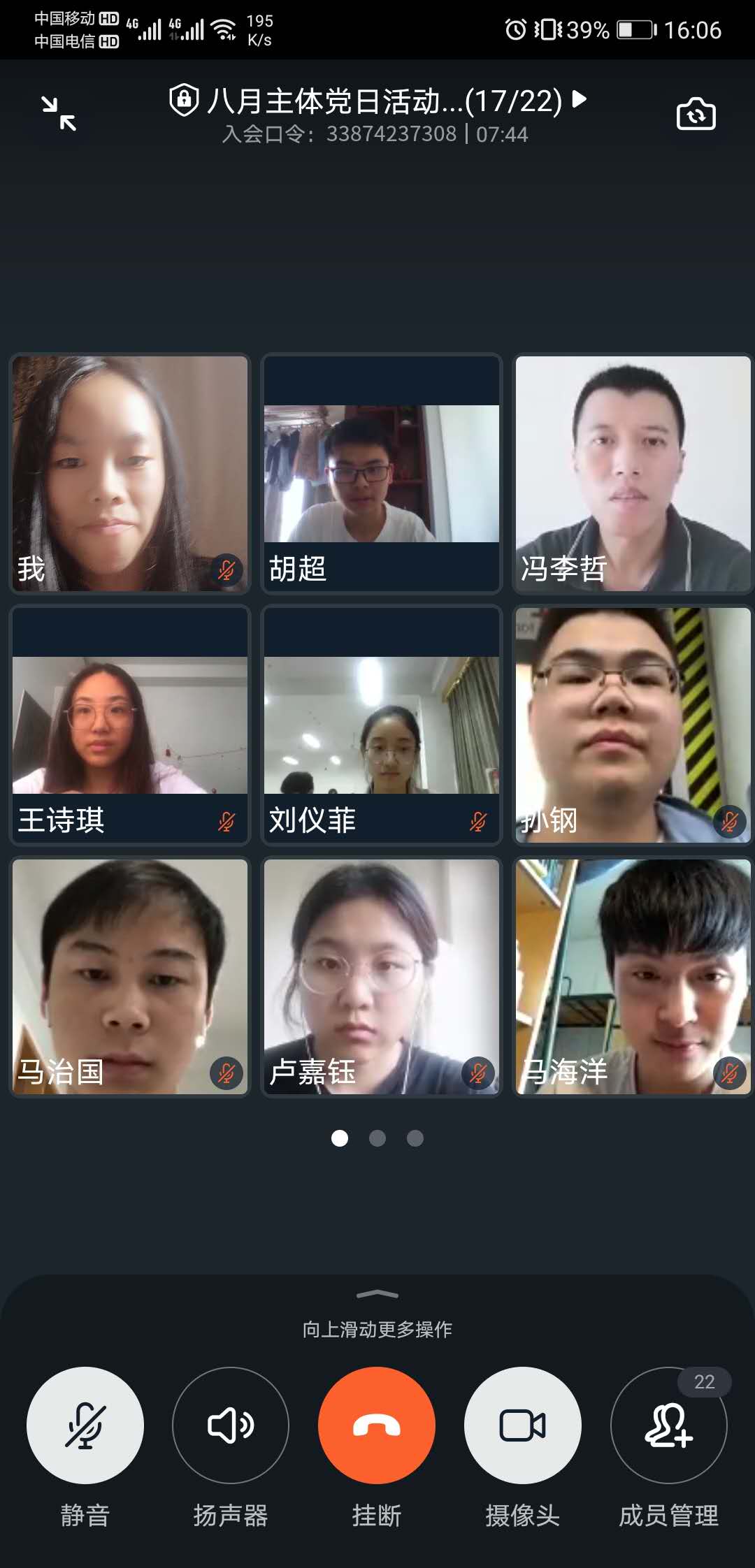 8月14日上午,学院各学生党支部组织师生党员在线学习了战“疫”示范微党课第八讲,并召开了学习心得分享会。