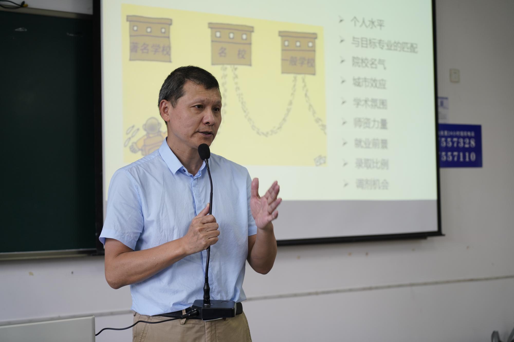 9月24日下午,为指导大四学生合理填报考研志愿,学院在B406多媒体教室举行了主题为“研途决战,上岸必胜”的考研动员讲座。讲座邀请了张文宇教授,朱凌、宋海裕、杨水清、陈伟锋四位教工党支部书记,院团委书记毛立晨分享指导经验。院党委书记徐奇伟、院党委副书记田聪、院学办主任李靓以及大四本科生参加了讲座。