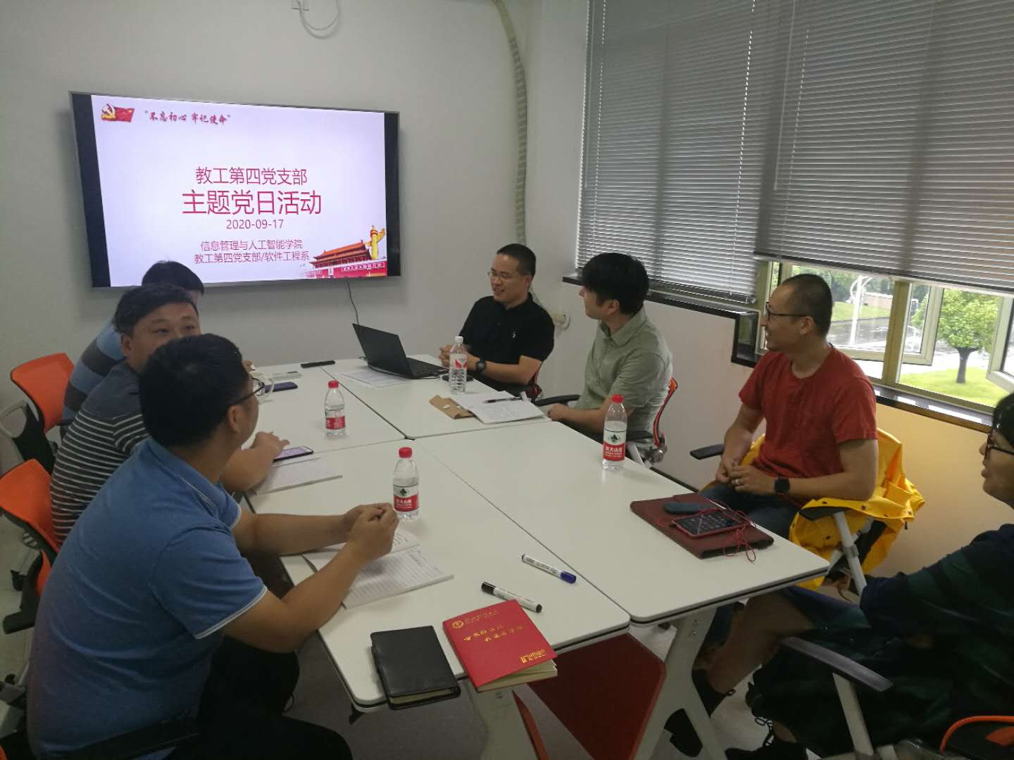 教工第四党支部组织全体党员教师在9301A开展“开学第一课”主题党日活动,认真学习省委书记袁家军同志在省委党校2020年秋季开学典礼上的讲话精神。