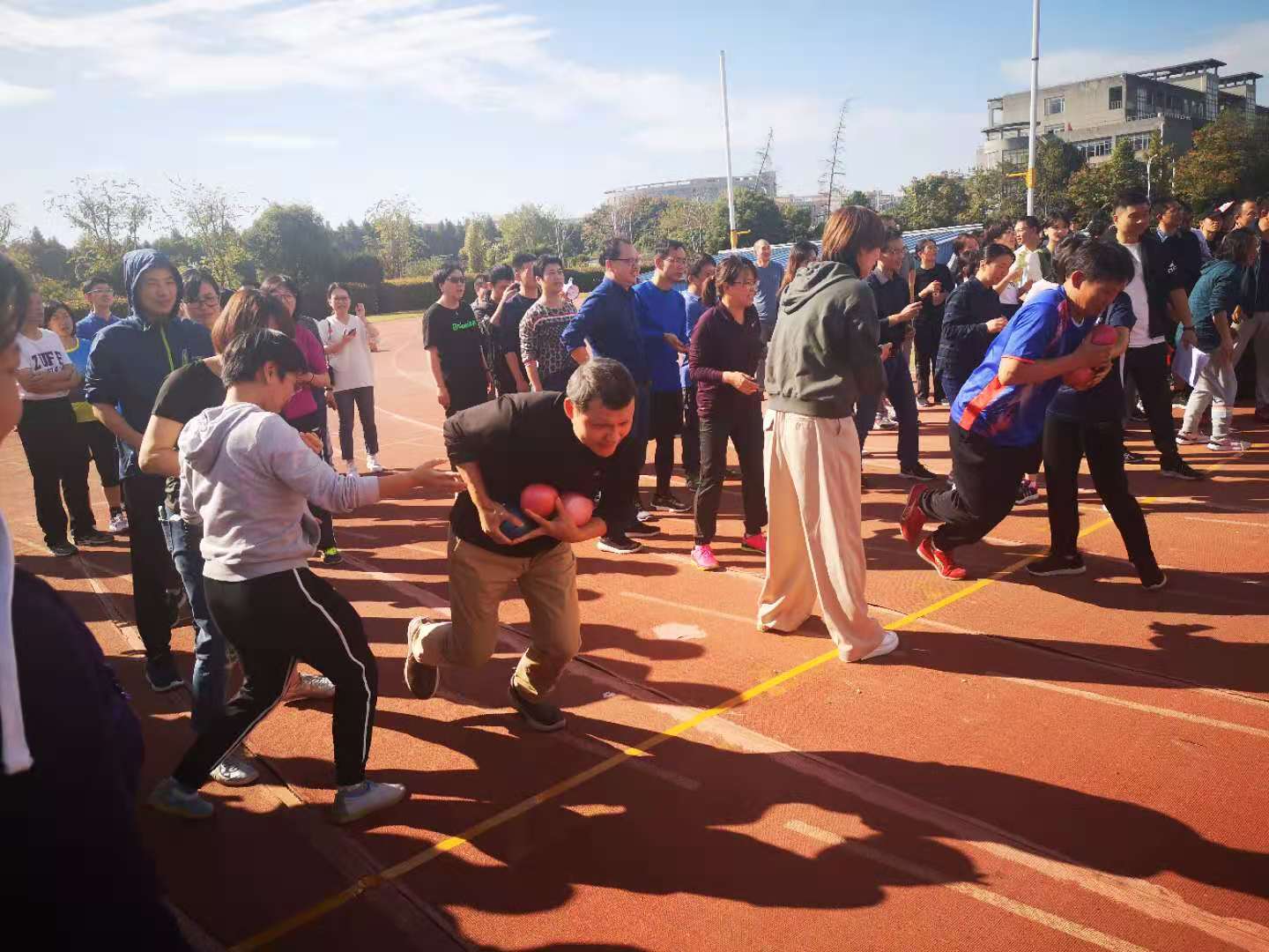 教职工也不落下风、奋勇拼搏,为学生运动员们做了榜样。