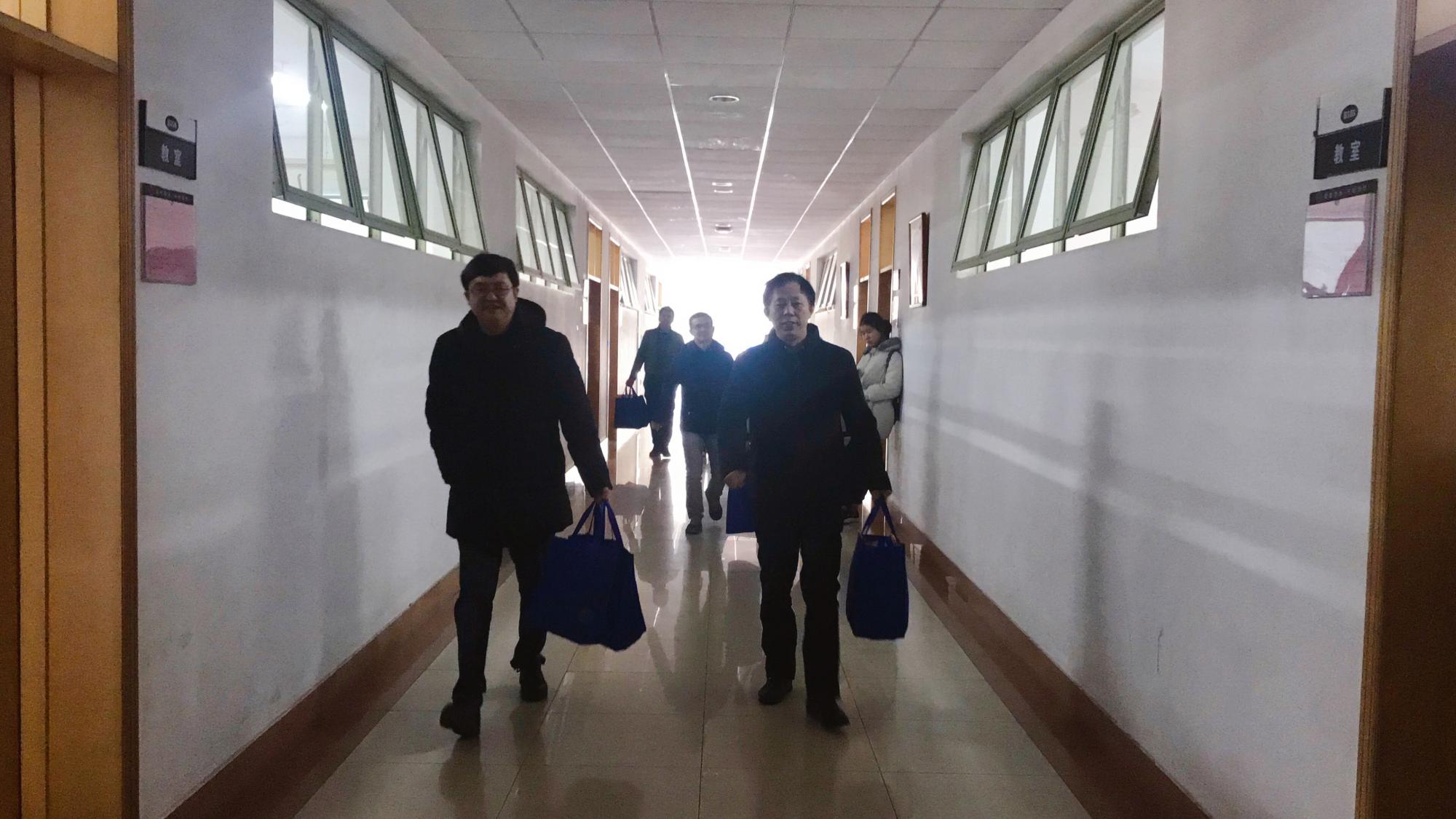 院长张帅、院党委书记徐奇伟、副院长陈远高、党委副书记田聪以及学院辅导员一行前往考研教室,为处于冲刺阶段的大四学生送去考研慰问与鼓励。