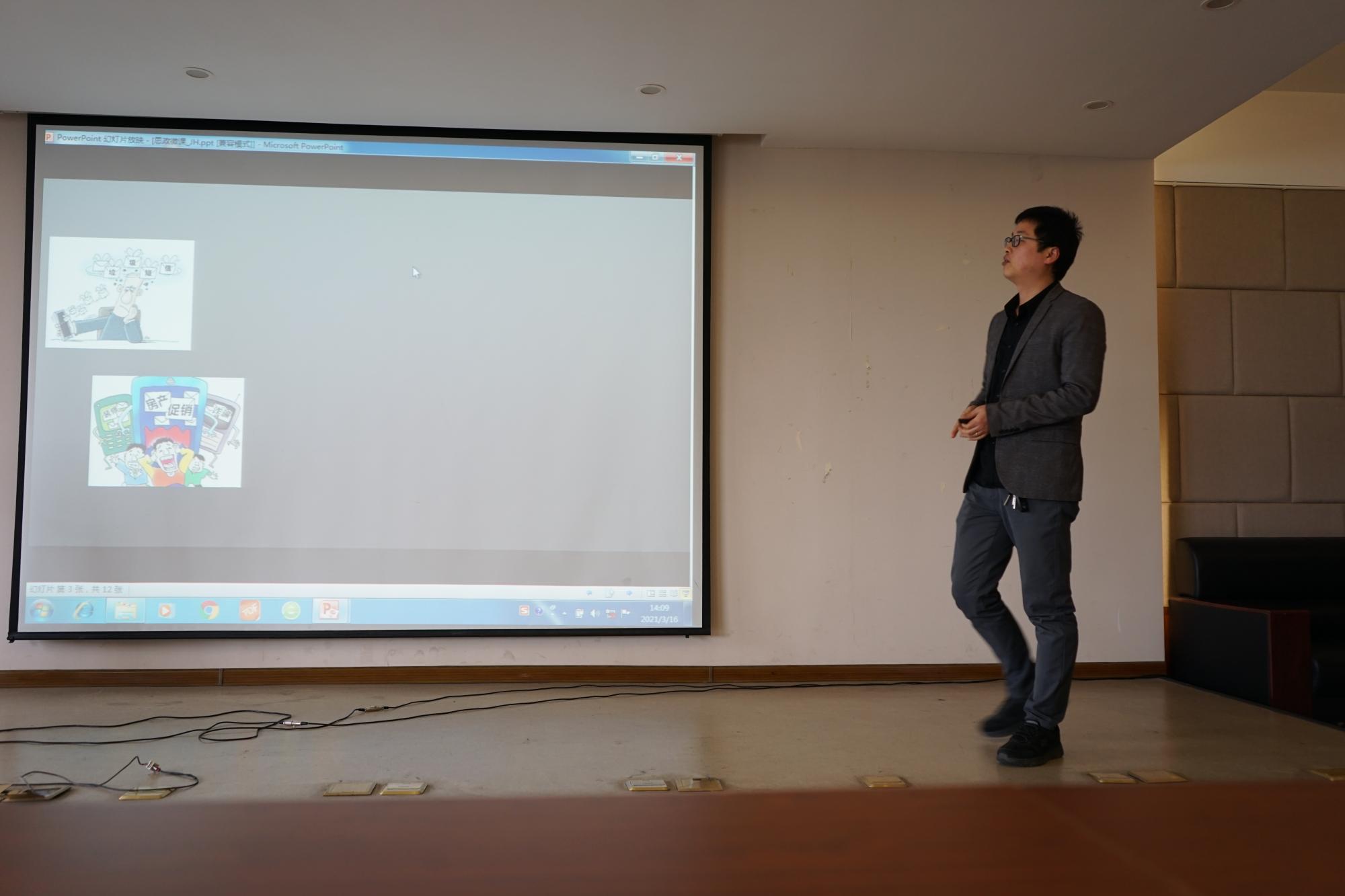 主管教学的陈远高副院长对本次比赛的背景、准备情况、比赛规则等进行了讲解说明。参加比赛的教师由四个系部推荐,课程名称分别为姜辉老师《数字化营销》、张林老师《国产硬件之殇》、黄朝耿老师《计算机组成原理》、刘维树老师《引文数据库应用》-我国自然科学产出演变-以SCIE论文为例。参赛教师各个精神饱满,充满激情,语言生动,教态自然,现场气氛活泼热烈。他们结合自己的课程内容及特色,深入挖掘课程思政育人元素,联系国家大政方针政策,进行了认真细致的讲解,实现了专业知识传授与思政教育的同向同行,体现了学院教师扎实的教学功底及专业知识素养,促进了课程育人的相互学习和交流。赛后,学院张帅院长和徐奇伟书记分别为参赛老师版发获奖证书和奖品。