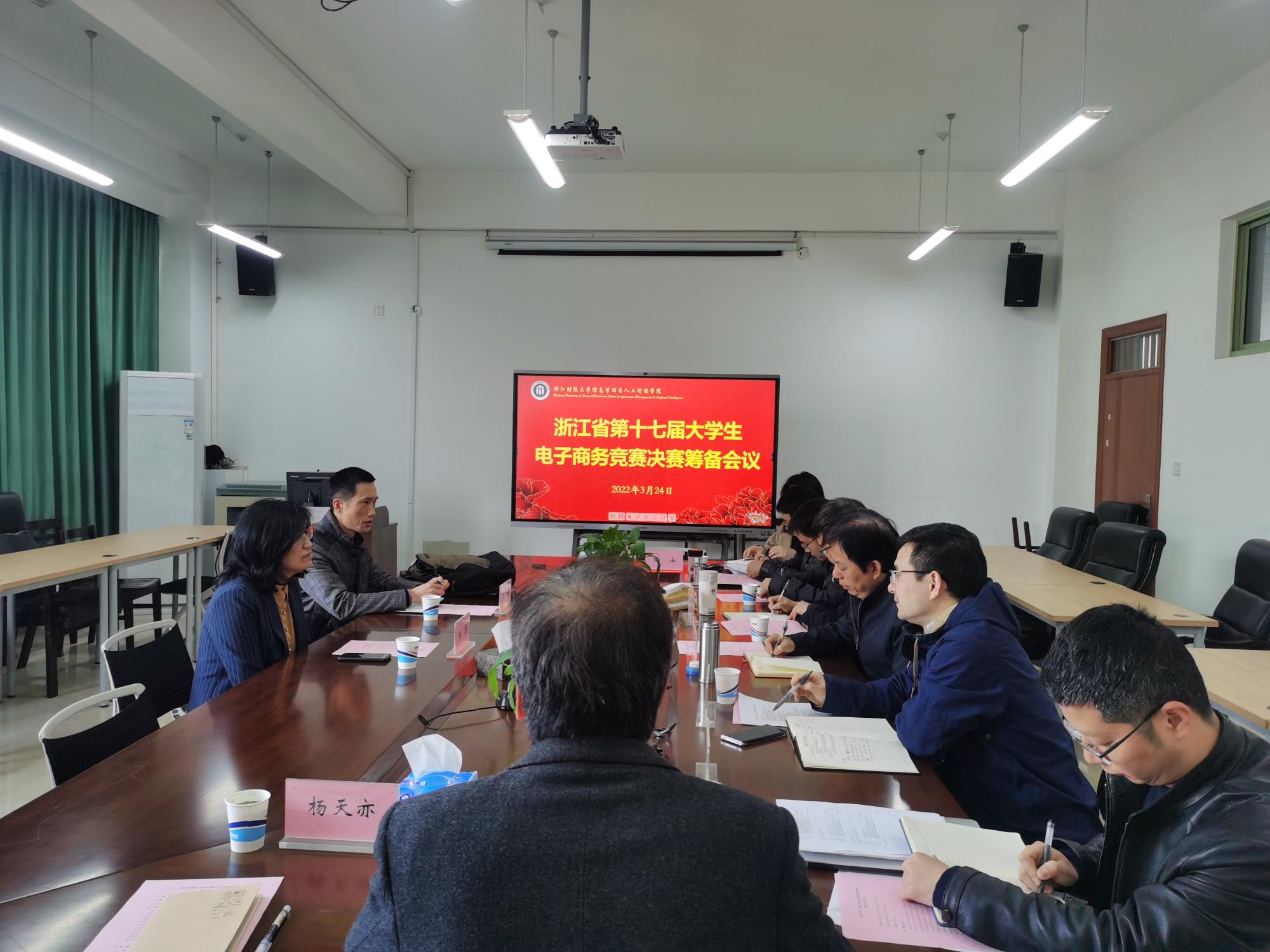 交流电子商务竞赛事项,学院院长张帅、党委书记徐奇伟、副院长陈远高、副院长隆清琦、电商系主任陈明晶、实验中心主任章华、办公室主任徐吉锋等参加了此次交流。