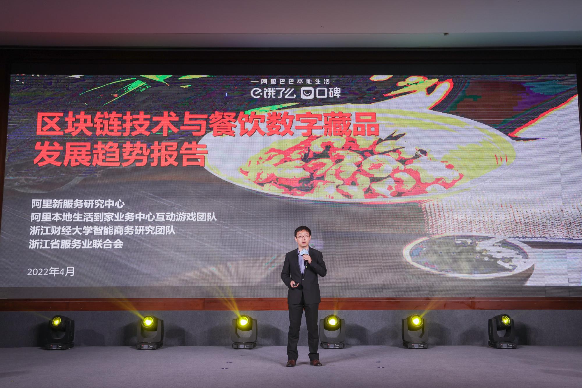 在本次发布会上,阿里新服务研究中心携手阿里本地生活到家业务中心互动游戏团队、成人视频 智能商务研究团队、浙江省服务业联合会共同发布《区块链技术与餐饮数字藏品发展趋势报告》,并由成人视频 电子商务系王鲁博士在发布会上做主题报告。