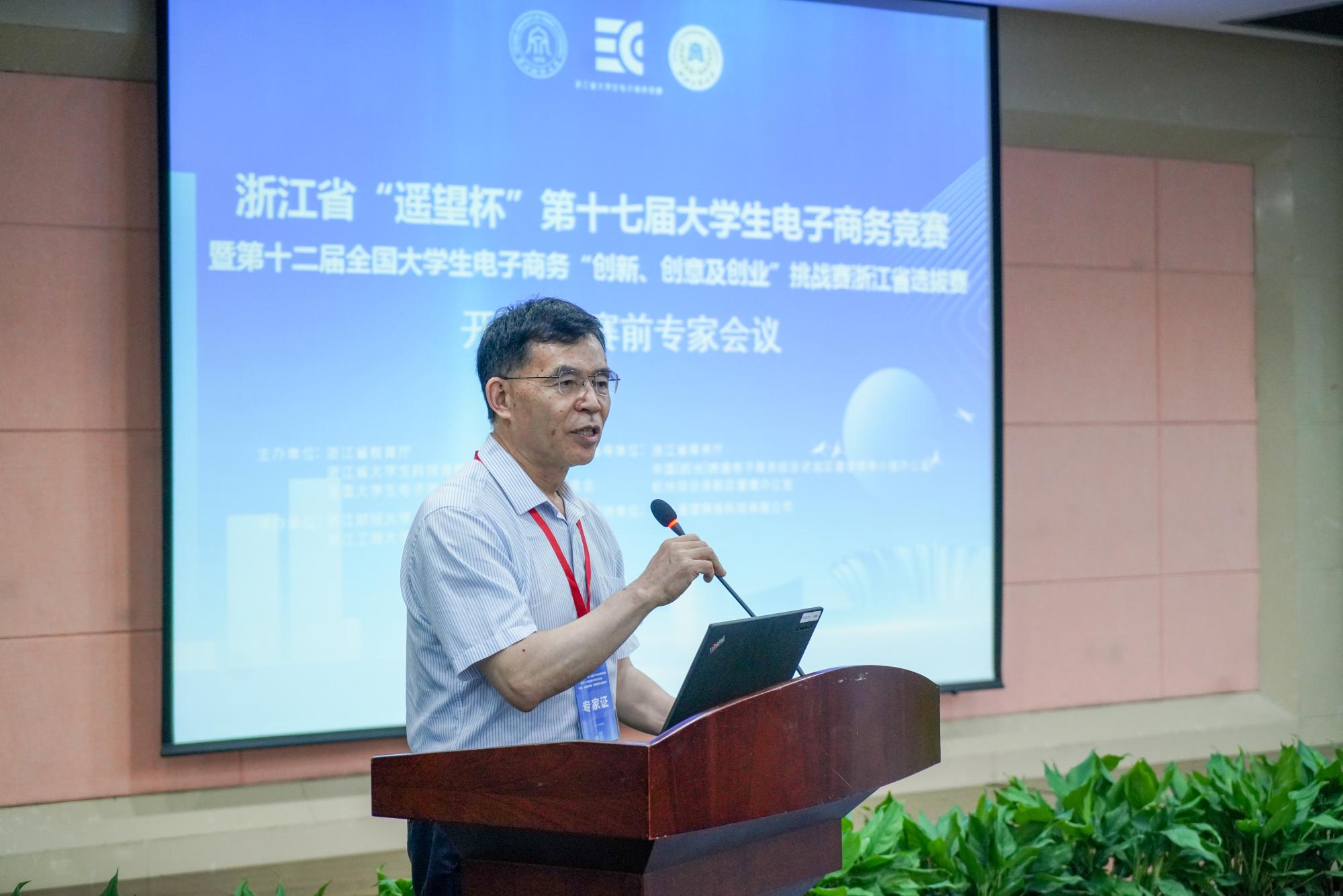 信息管理与人工智能学院副院长陈远高汇报了大赛后勤保障工作。开幕式由浙江工商大学管理工程与电子商务学院党委书记伍蓓主持。