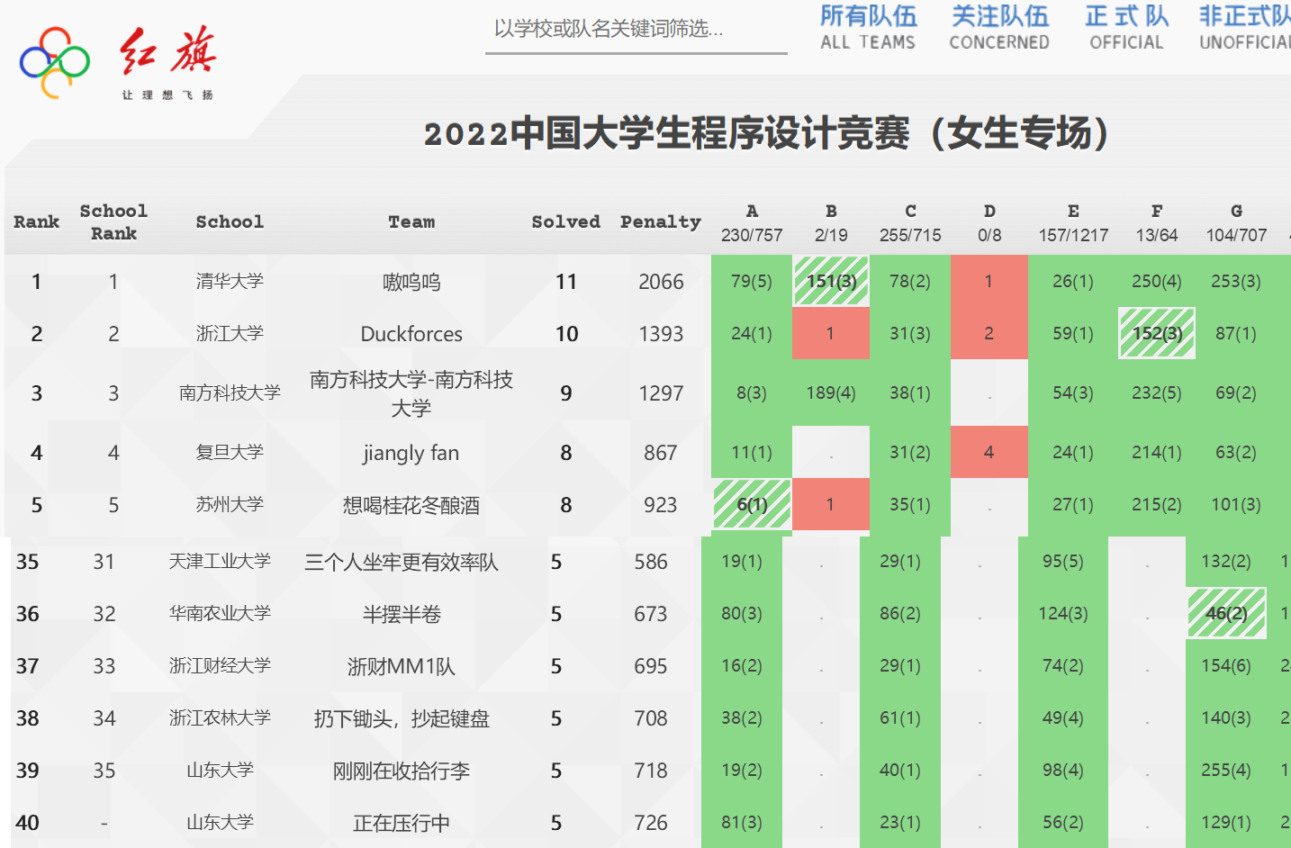在ICPC如火如荼进行的同时,第八届中国大学生程序设计竞赛(CCPC)女生赛也在进行中。本届女生赛吸引了清华大学、浙江大学、复旦大学、香港中文大学等在内的156所高校,共计267支正式队伍参赛。在CCPC女生赛中,由成人视频