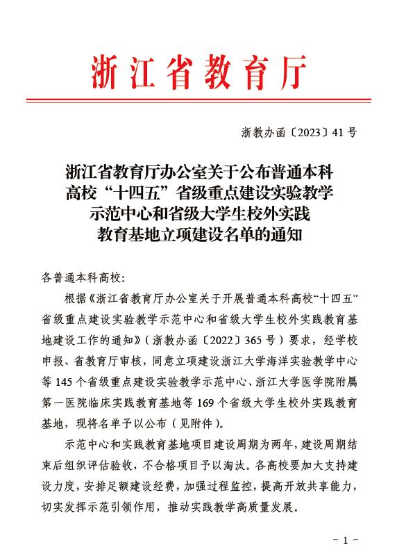 近日,浙江省教育厅公布了普通本科高校“十四五”省级重点建设实验教学示范中心立项建设名单,成人视频