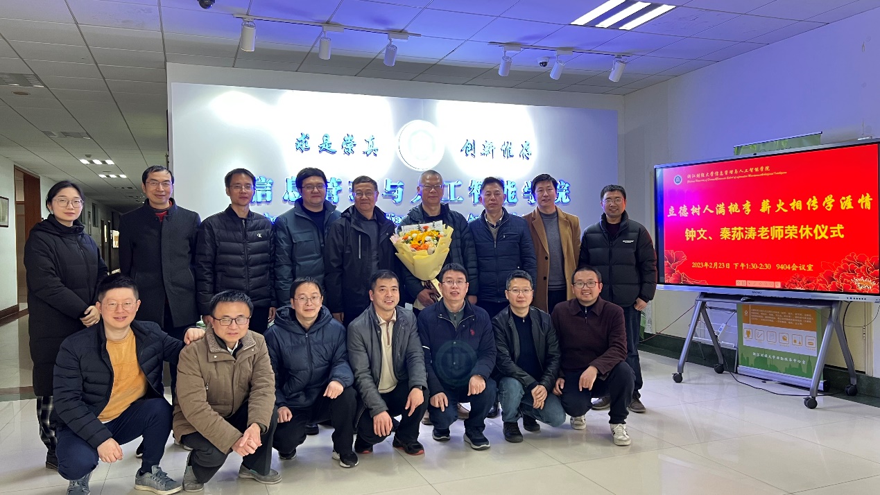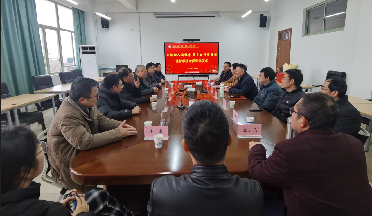 2月23日下午,学院为2022-2023学年度退休的钟文、秦荪涛两位教师举行了隆重的荣休仪式。学院院长张帅、党委书记徐奇伟等院领导班子、系部办主任、荣休教师所在系部教师代表共同见证了这一感人而温馨的时刻。