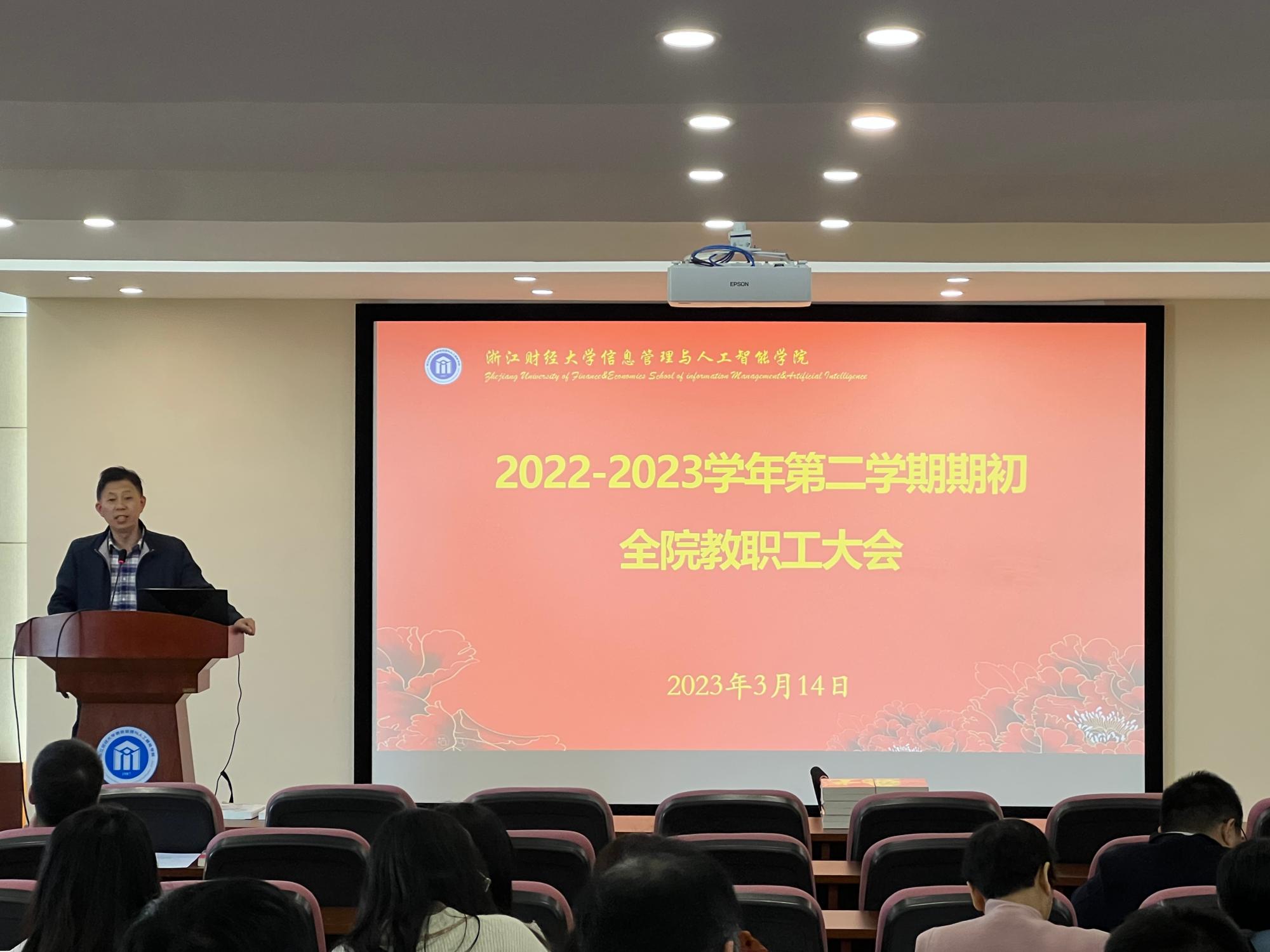 3月14日下午,成人视频 在9-302组织召开2022 -2023年第二学期期初教职工集中大会,学院全体教职工参加了此次大会。