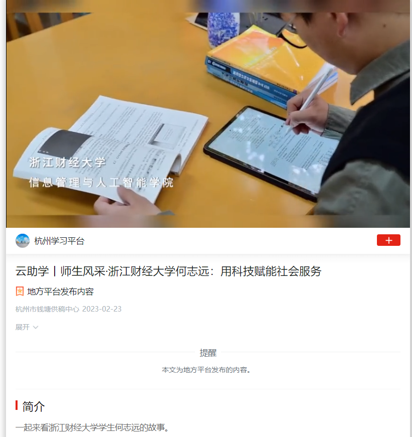 报道链接://article.xuexi.cn/articles/index.html?art_id=3886989184986932422&t=1677050613051&showmenu=false&cdn=https%3A%2F%2Fregion-zhejiang-resource&study_style_id=video_default&source=share&share_to=wx_single&item_id=3886989184986932422&ref_read_id=8e470b8c