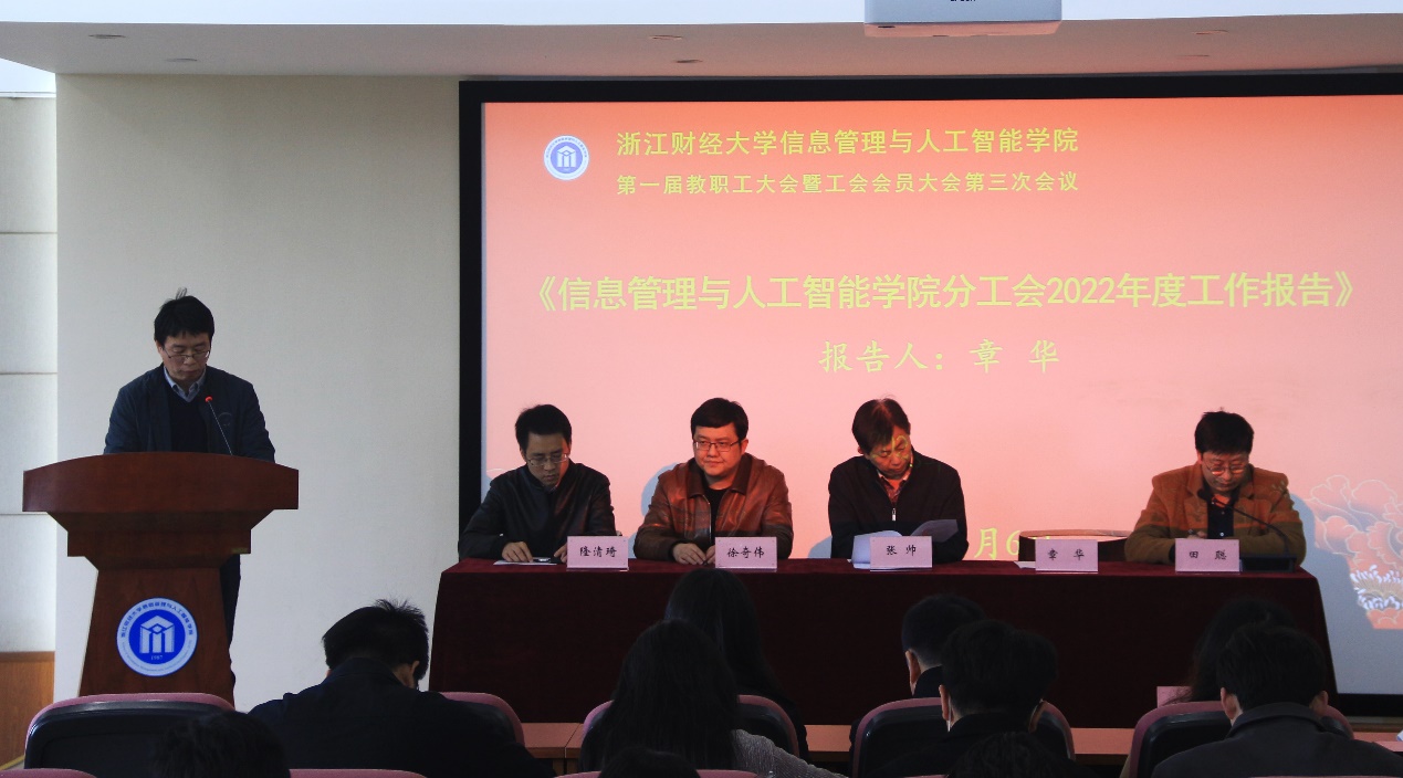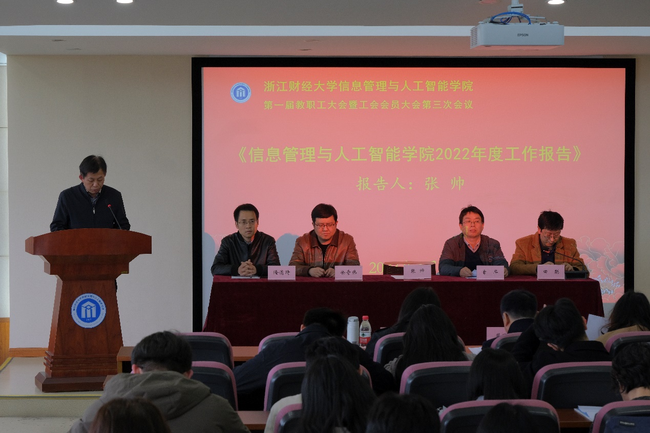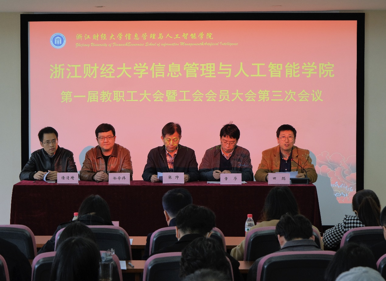 信息管理与人工智能学院第一届教职工大会暨工会会员大会第三次会议在学院302报告厅隆重举行。学院全体教职工参加了大会,大会由学院党委副书记田聪主持。