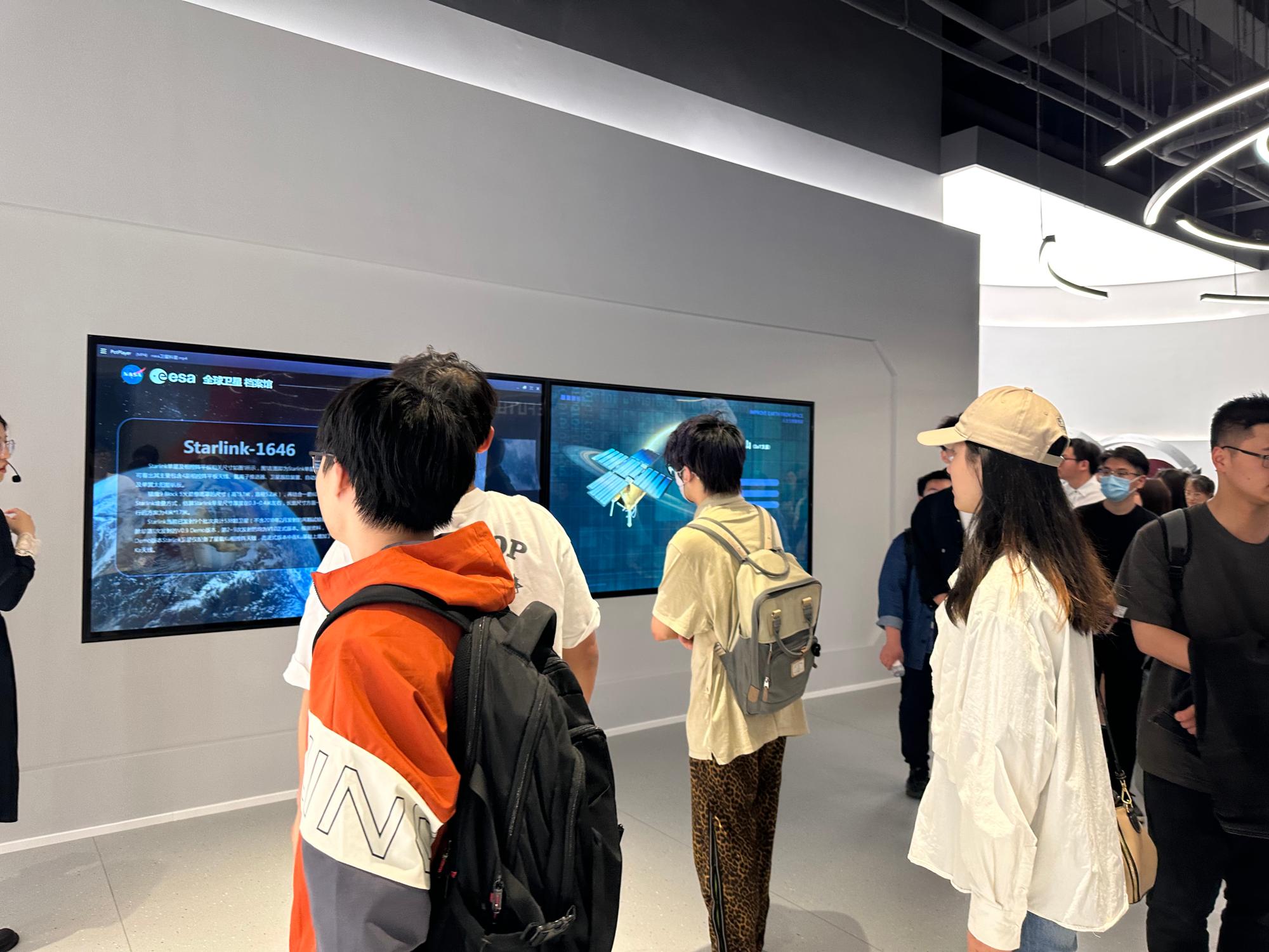 地卫二空间技术有限公司致力于AI卫星研制及AI遥感数据挖掘及AI星座投资运营,在该公司的展厅中,师生们参观了星辰厅、远见厅两个展厅和一个连廊区,展示人类探索太空的文化历程,陈列了大量的航天器、卫星元器件、卫星测控大屏等高精尖器材,并采用先进的VR互动技术,让参观者对本来觉得遥不可及的航天技术有一个更为直观的感受。