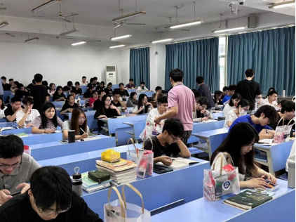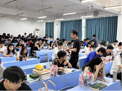 上届学生考研情况,就考研的重要性以及院校选择、复习规划等给同学们做了专题分享。
