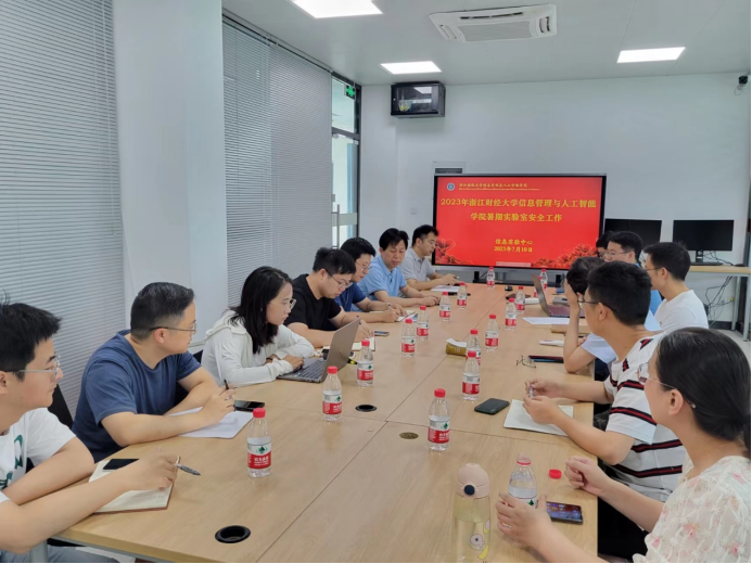 信息管理与人工智能学院深入学习贯彻习近平总书记关于安全生产的重要论述和指示批示精神,全面落实《教育部关于加强高校实验室安全工作的意见》和我校《关于做好2023年暑期实验室安全工作的通知》,7月10日,学院在9301C会议室召开了2023年暑期实验室安全工作专题会,学院领导、实验中心和暑期实验室开放项目负责人参加了此次会议。