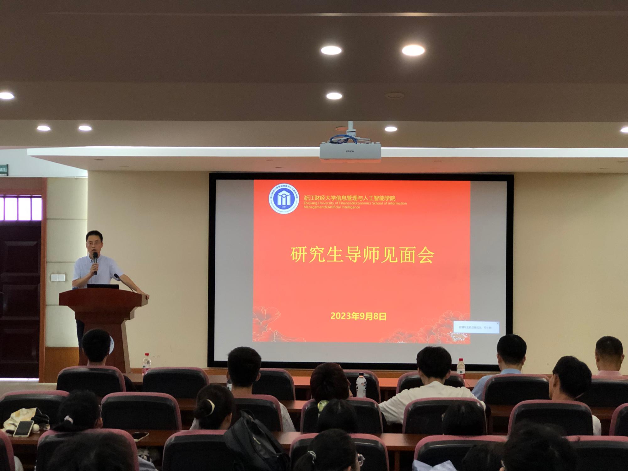 9月8日,信息管理与人工智能学院在9302报告厅举行2023级研究生入学教育暨研究生导师见面会,学院副院长隆清琦、党委副书记田聪、导师代表、研究生辅导员及研究生秘书等出席会议,学院2023级硕士、博士研究生50余人参加会议。