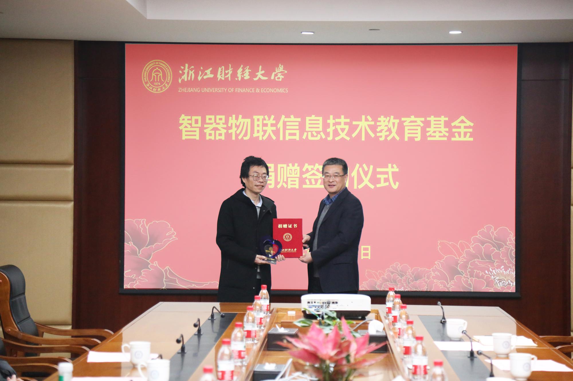 捐赠200万元,设立“智器物联信息技术教育基金”。校党委副书记徐晓东,杭州智器物联科技有限公司董事长、2007届校友徐佳路,校发展联络办公室,校友办公室负责人,成人视频