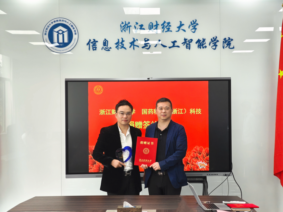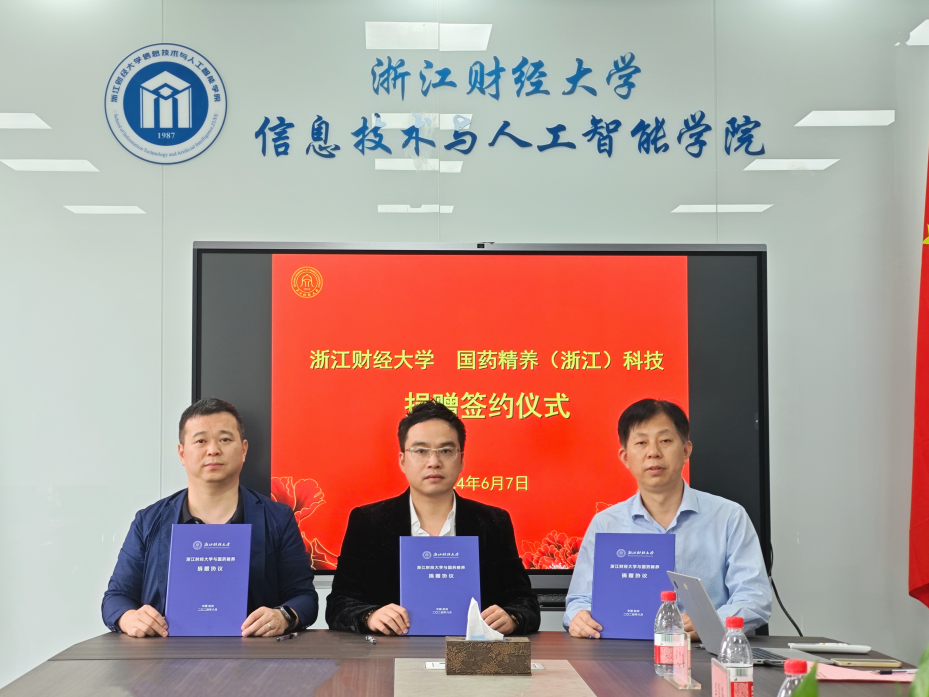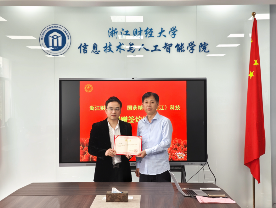 院长张帅、党委书记吴翼泽签署物资捐赠协议,并接受捐赠支票。吴玻、张帅还为金皇飞颁发捐赠证书和产业导师聘书。