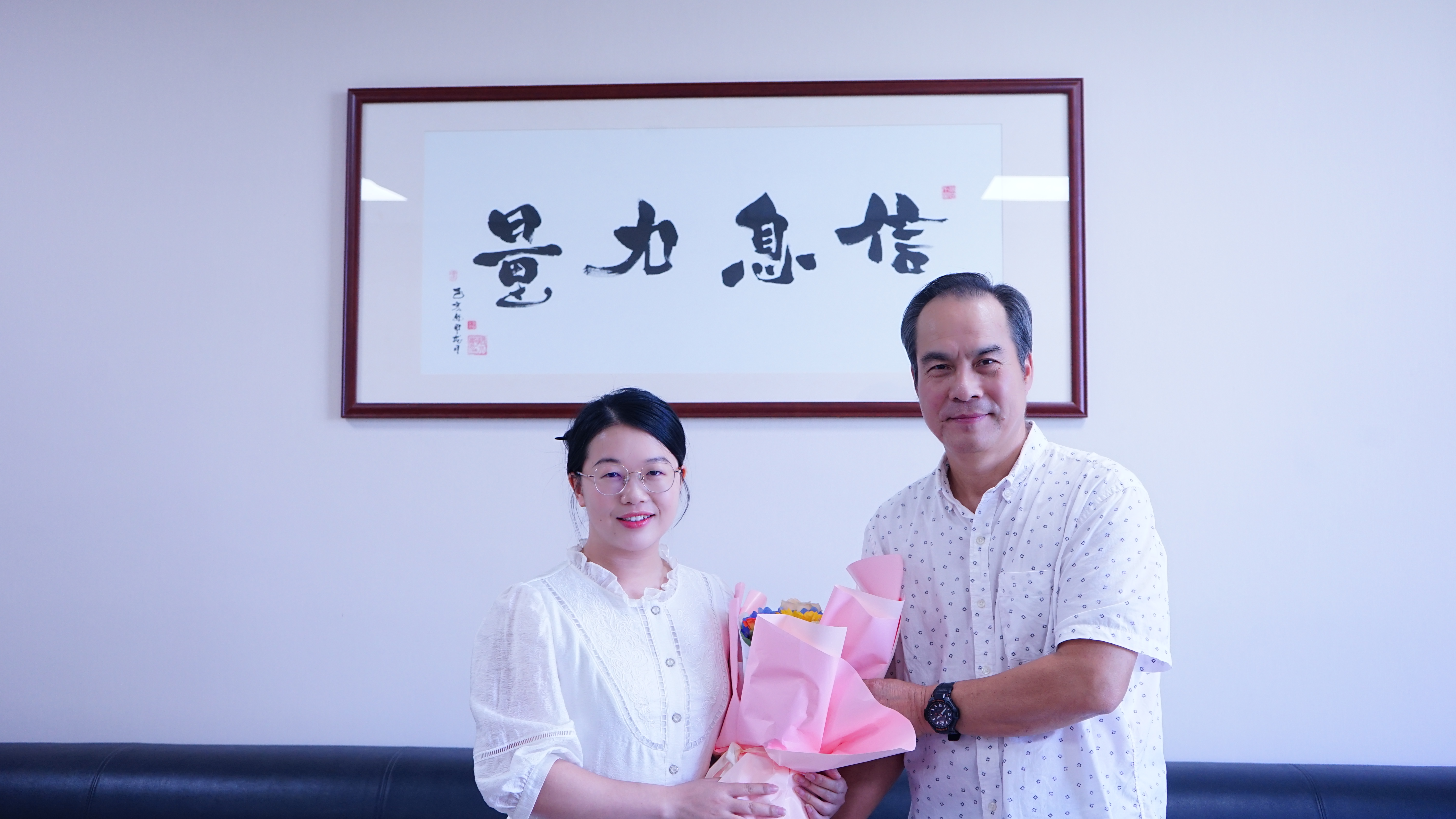 王副校长首先对彭莉莎老师在教学和科研上付出的辛勤努力和取得的成果表示高度赞扬和鼓励,并亲手送上鲜花,对彭老师致以节日的祝福和亲切的问候。他强调,青年人才是学校高质量发展的动力和保障,他勉励以彭老师为代表的青年教师开辟新路径、展现新担当、作出新贡献。