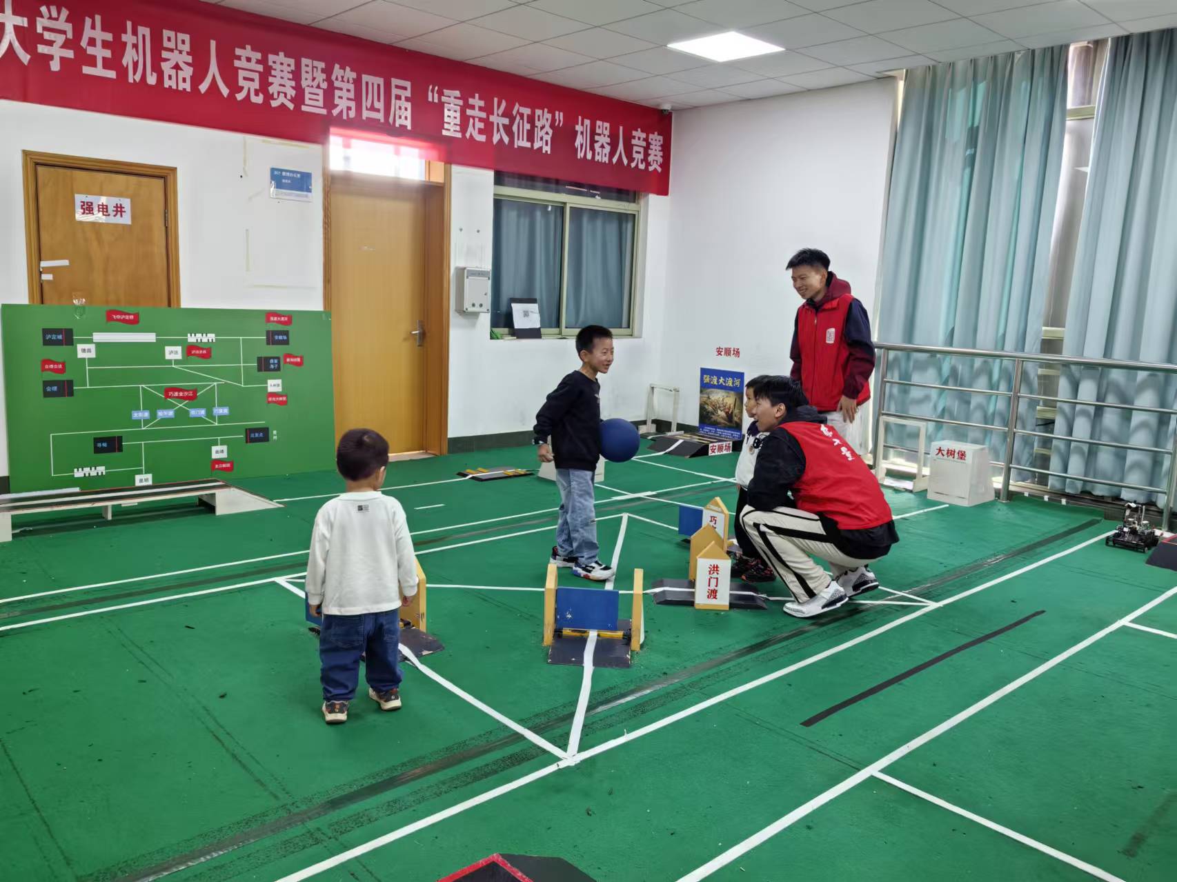 在“重返爸妈青春,智享 AI童趣”亲子活动体验区,欢声笑语不断。小朋友们紧紧握着箭矢,每一次投掷都充满期待。另一角,孩子们在志愿者的帮助下小心翼翼地按下按钮,感受人工智能的无限魅力。