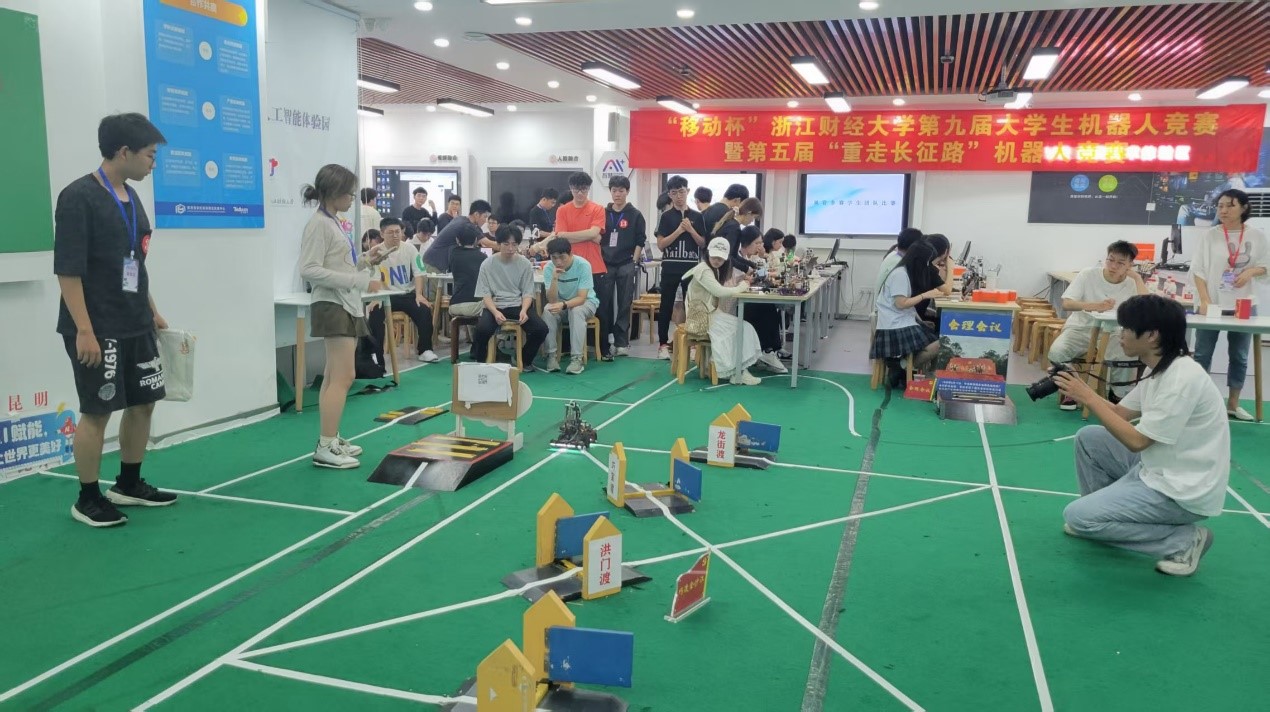 第九届大学生机器人暨第五届“重走长征路”机器人竞赛正式拉开帷幕。本届竞赛以“金沙智渡开新路,泸定铁臂擎红旗”为主题,要求参赛团队通过编程控制机器人模拟完成长征途中的标志性任务。经过激烈角逐,16支决赛队伍最终决出一等奖3组、二等奖5组、三等奖8组。赛事不仅考验了学生的技术能力,更通过红色主题设计深化了思政教育与专业实践的融合。