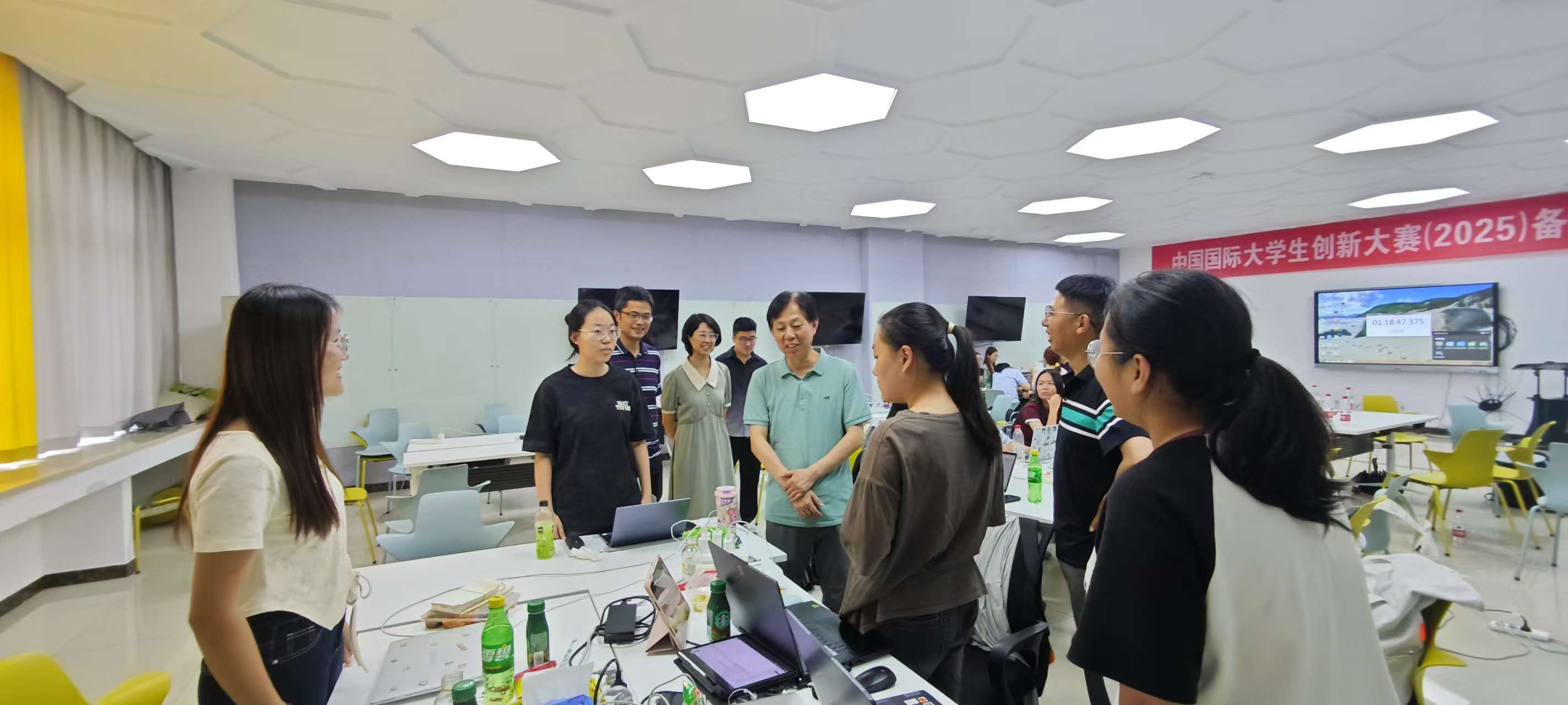 备赛师生,详细了解项目进展,对参赛团队所展现出的拼搏进取精神与取得的阶段性成果给予高度评价,并给予建设性的指导意见,