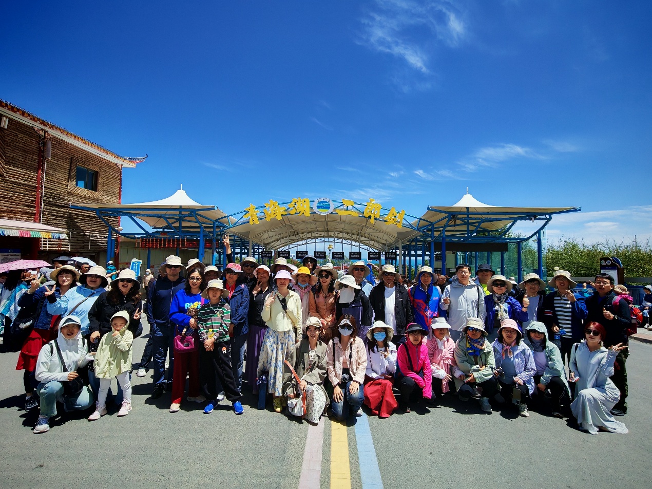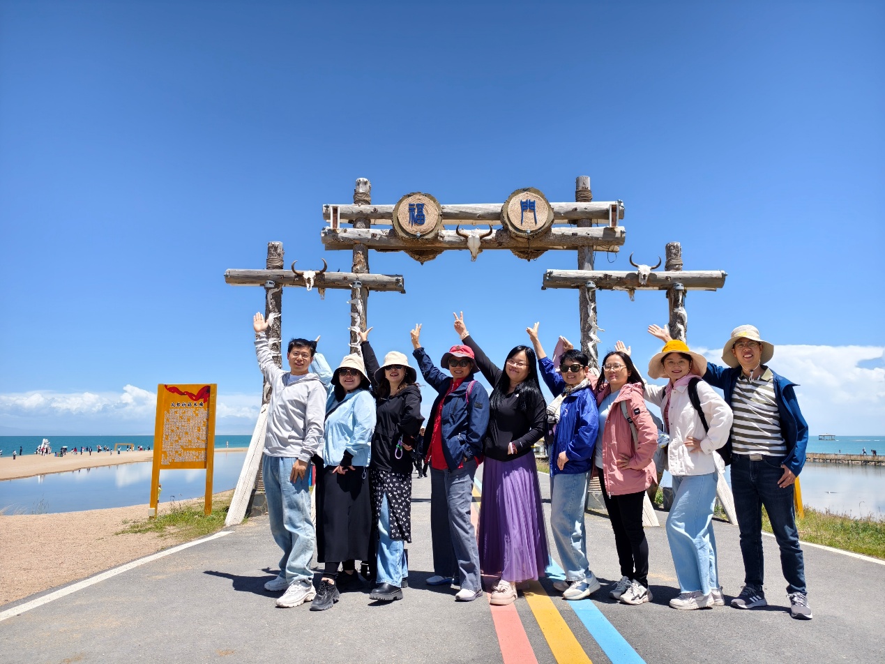 7月8日聚焦青海核心自然景观:上午抵达中国最大咸水湖青海湖,湛蓝湖面与雪山、草原相连,微风拂过波光粼粼,老师们沿湖漫步,青草气息驱散疲惫;午后前往“天空之镜”茶卡盐湖——曾入选《国家旅游地理》“人一生必去的55个地方”,平静湖面倒映天地与身影,老师们脱鞋入浅滩拍“人在镜中走”的创意照,欢声笑语回荡盐湖上空。