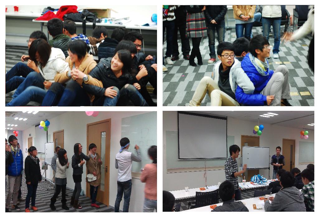 下午2:00,进入最后一个环节-团队合作训练。在Infosys员工的组织和带领下,同学们积极参加了两个小游戏.这两个游戏旨在提高同学们的沟通理解能力与团队合作能力,同学们既收获了欢乐,又提高了团队协助能力。
