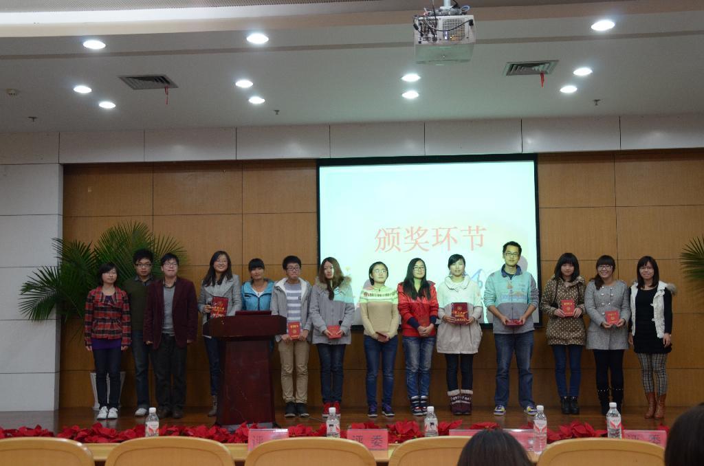 最终经过近2个小时激烈的角逐,来自10级电子商务1班的梁仁方同学和来自12信息1班的付钰涵同学分别获得本届“学子大讲坛”特等奖;来自10级电子商务1班的李芸同学和来自11级计算机2班的王江婷同学分别获得一等奖;来自11级电子商务1班的袁慧莉同学,2010级电子商务1班的徐倩培同学和10级计算机1班的胡玉莹同学分别获得了二等奖;来自12级软件工程班的何红亮同学,12级电子商务2班的俞静洁以及12级计算机2班的吴燕燕同学分别获得三等奖。