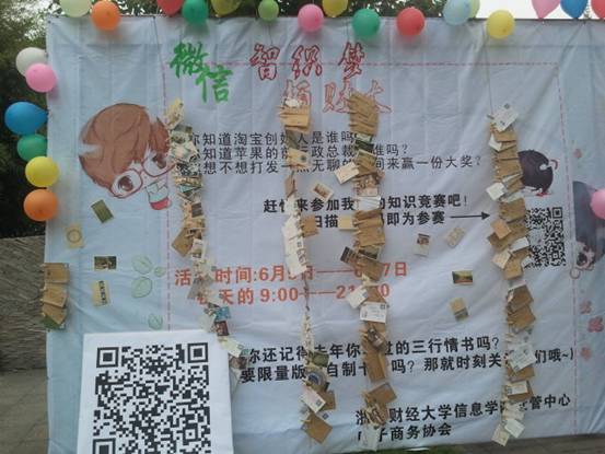 6月5日, 信息学院社管中心与电子商务协会联合举办了主题为“微智织梦,信扬财大”的趣味知识挑战赛。