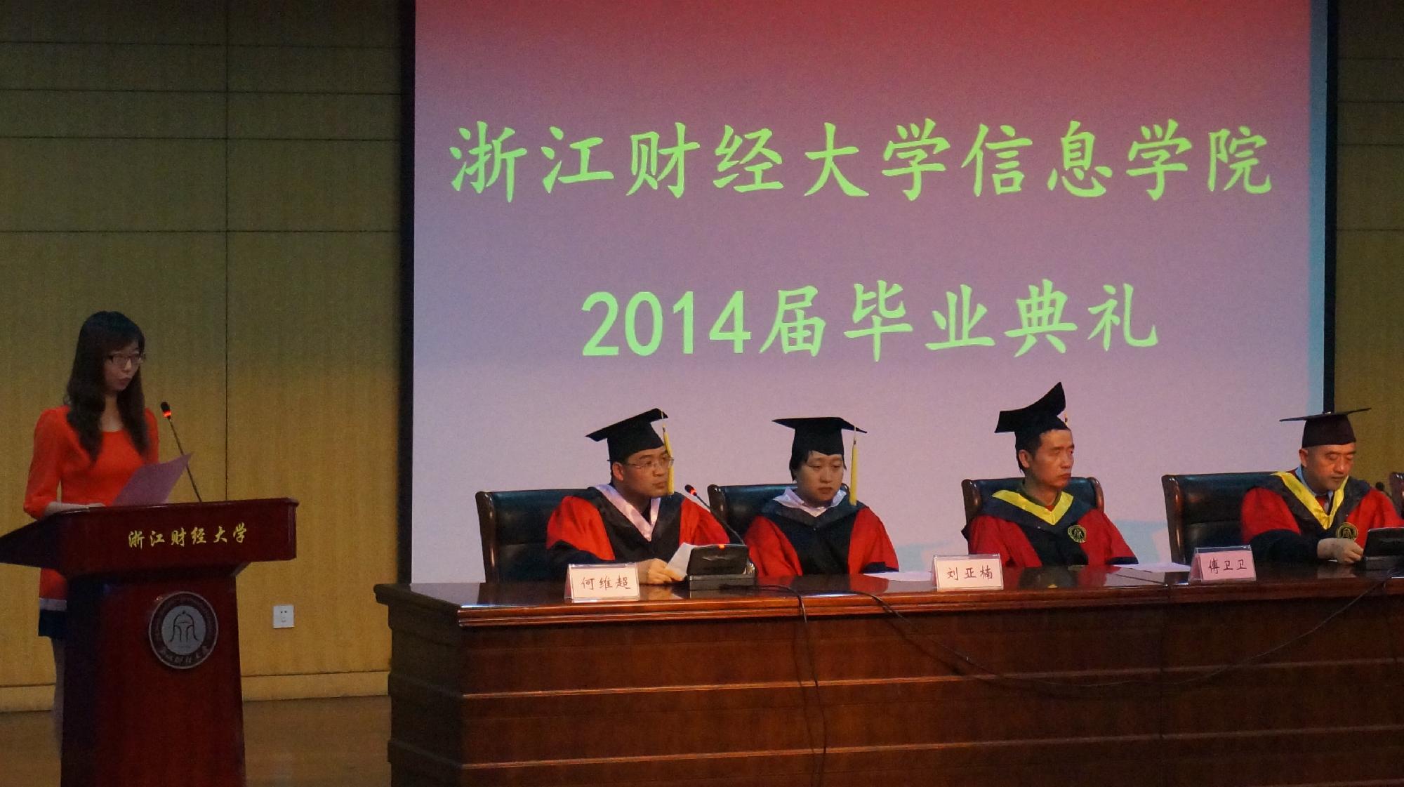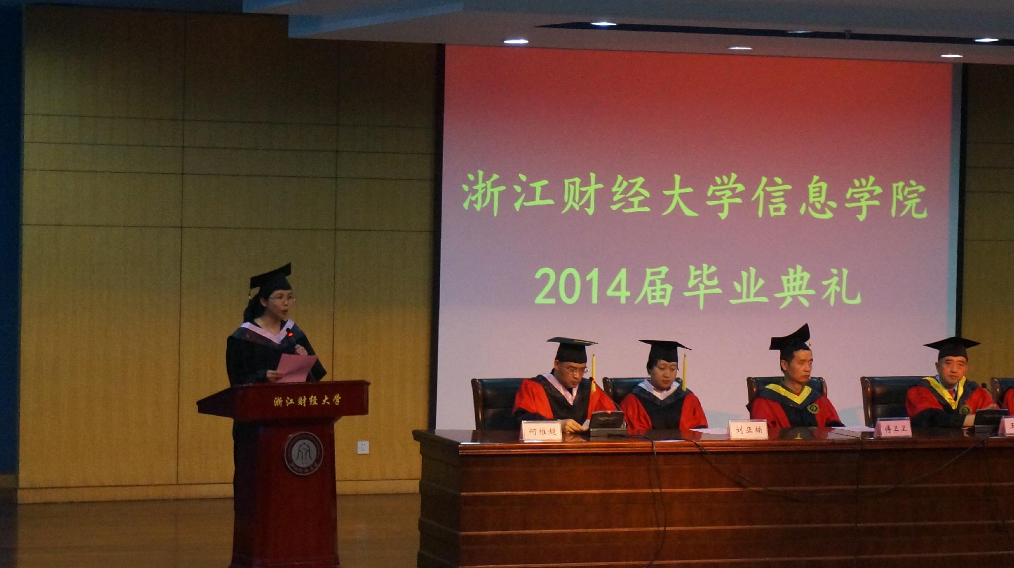 信息学院2014届毕业典礼在学术中心第一报告厅隆重举行。学院领导和300多名毕业生参加,整个场面隆重而庄严。