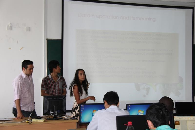 张佳然同学说:“张教授所教的是关于数据挖掘的课程,教给我们如何用专用软件进行深度的数据挖掘。上课是用全英文授课的,对于我来说听懂全部内容还是很有难度的。但是老师会进行软件的实例操作演示,通过演示可以明白所讲的关键点。张老师上课很温柔,特别喜欢就是老师笑起来圣诞老人一样很可爱!让我们多和外国同学交流、互相帮助。外国同学也非常喜欢向老师问问题。”