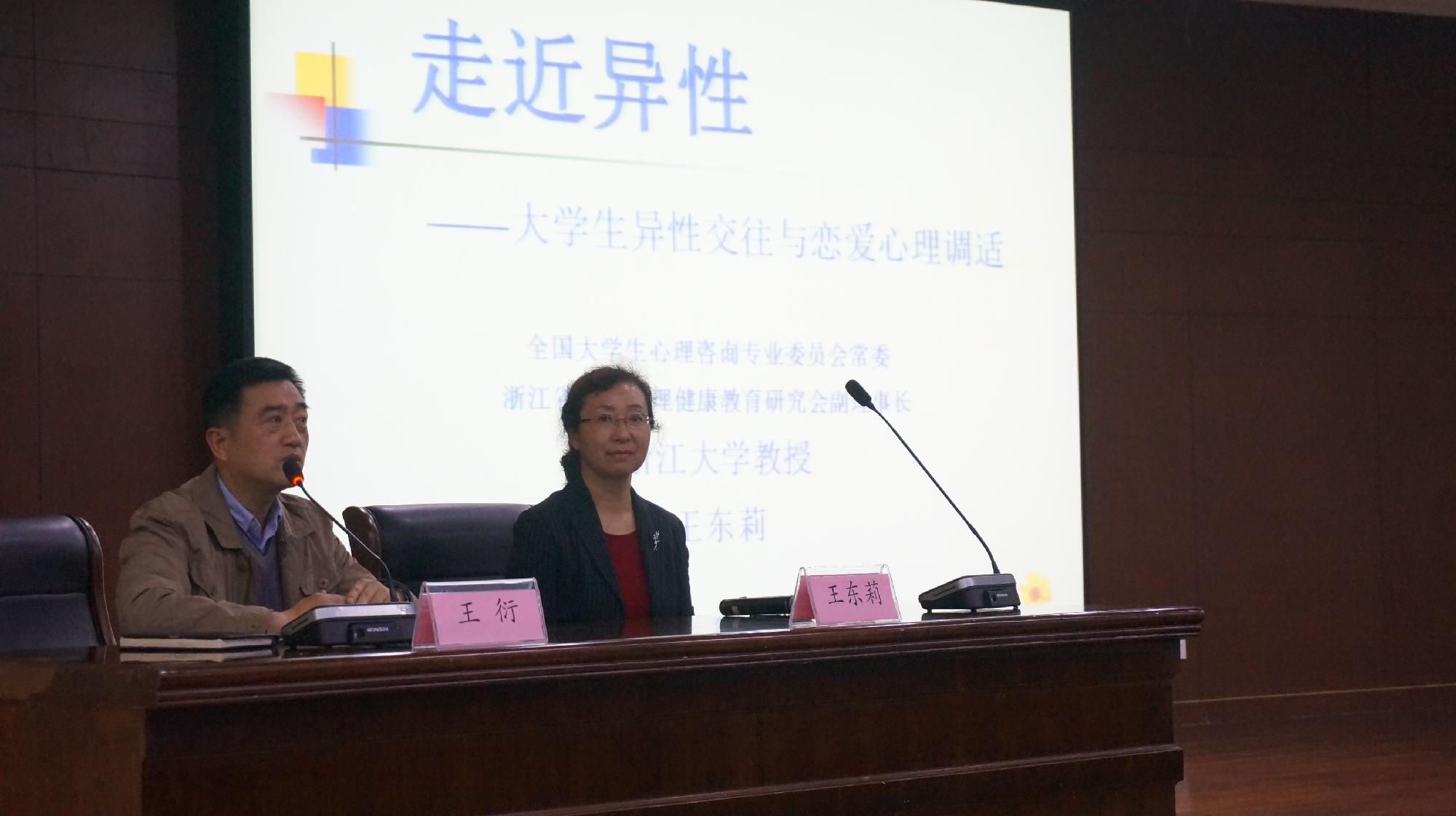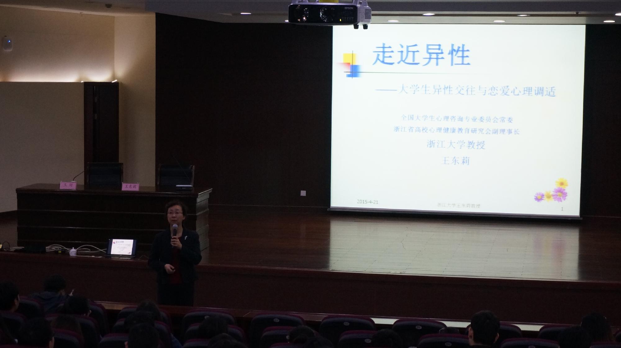 421日下午,信息学院桫椤心理工作站在学术四报举办了一场关于大学生异性交往与恋爱心理调试的心理健康讲座。本次讲座邀请到浙江大学的王东莉教授作为主讲人。信息学院党总支书记王衍教授主持并做了欢迎词。信息学院、校思政部及二级学院等师生参加了此次讲座。