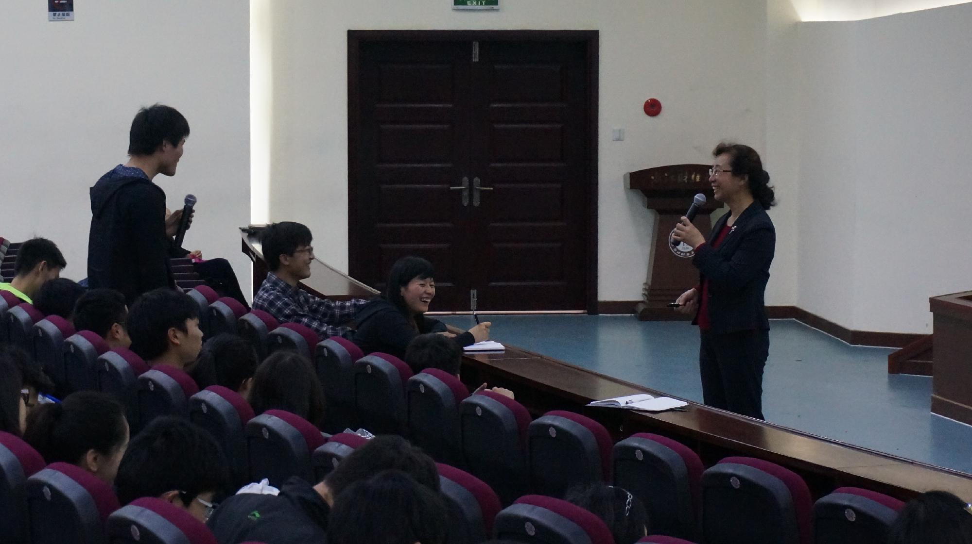 讲座开始,王教授就对异性的了解程度与在座同学进行了简短交流,并带领同学们从思维方式、心理需求、行为方式、个性特征、心理倾向等方面分析男女间的差异。然后就如何以异性和谐相处与同学们做了深入探讨,分析异性交往中常见问题。最后,王教授与同学们分享了异性之间相处之道以及异性间爱的真谛、对爱的思考。