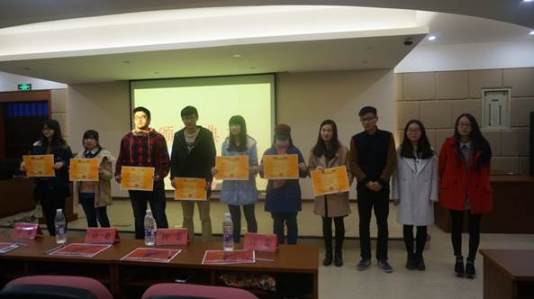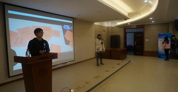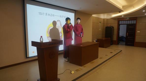 最让人印象深刻的是14软工班给大家带来的歌曲串烧,美妙的歌声中配以班级同学们的生活照,一张张幽默的表情包成功吸引了评委和观众们的目光,此外,更有班级团支书的主题宣讲。