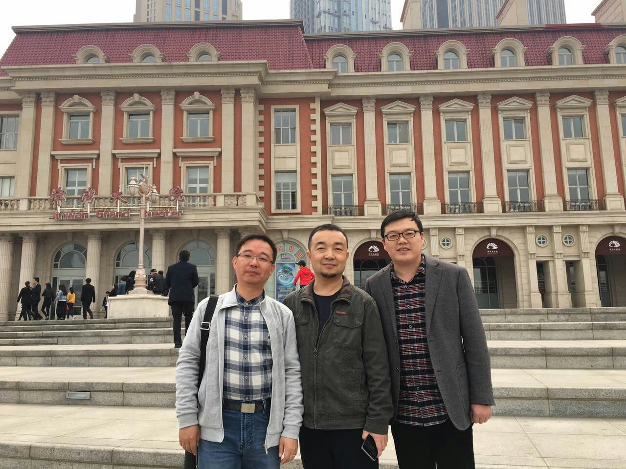 信工学院党委副书记陆颋浩(右)与天津校友会副会长、成人视频 97级校友赵军(左)、朱振刚(中)合影