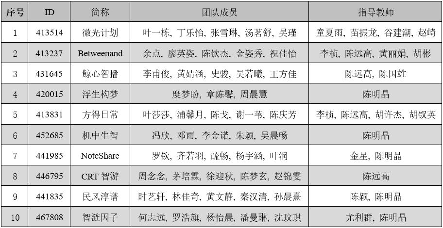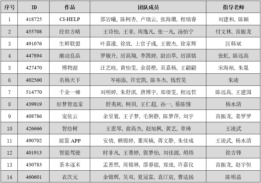 附2:推荐省赛的另外十四个团队