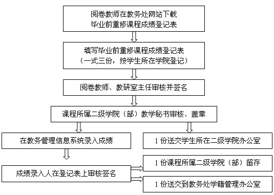 2、请各卷教师于516日前将毕业前重修成绩(一式三份)交课程所在二级学院(部)办公室。