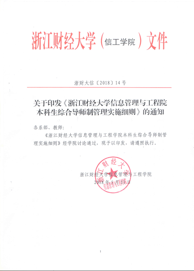 关于印发《成人视频 信息管理与工程学院本科生综合导师制管理实施细则》的通知