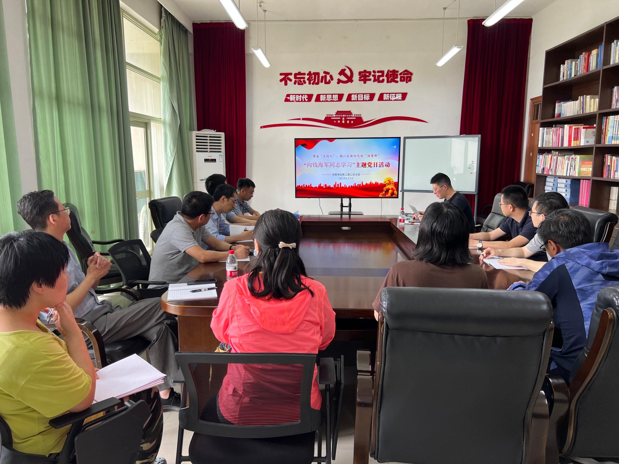 教工第二党支部举办“向钱海军同志学习”主题党日活动。学院副院长陈远高及支部党员参加活动,活动由支部书记宋海裕主持,支部党员集体学习钱海军同志先进事迹。