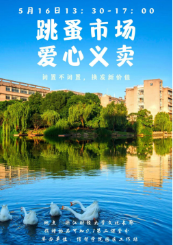 五月“跳蚤市场 爱心义卖”活动在下沙校区文化长廊如期举行。我校师生均可参与,爱心捐赠,传递温暖!