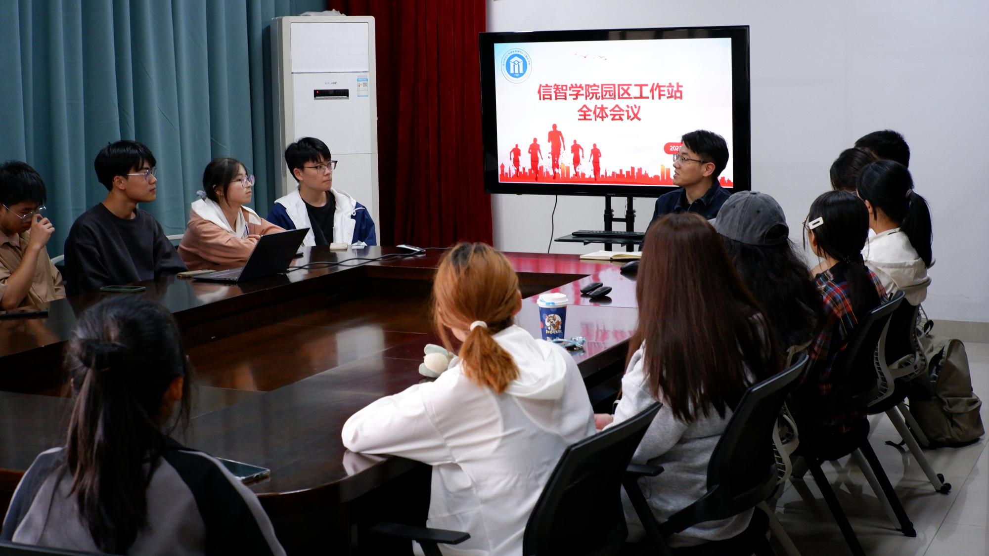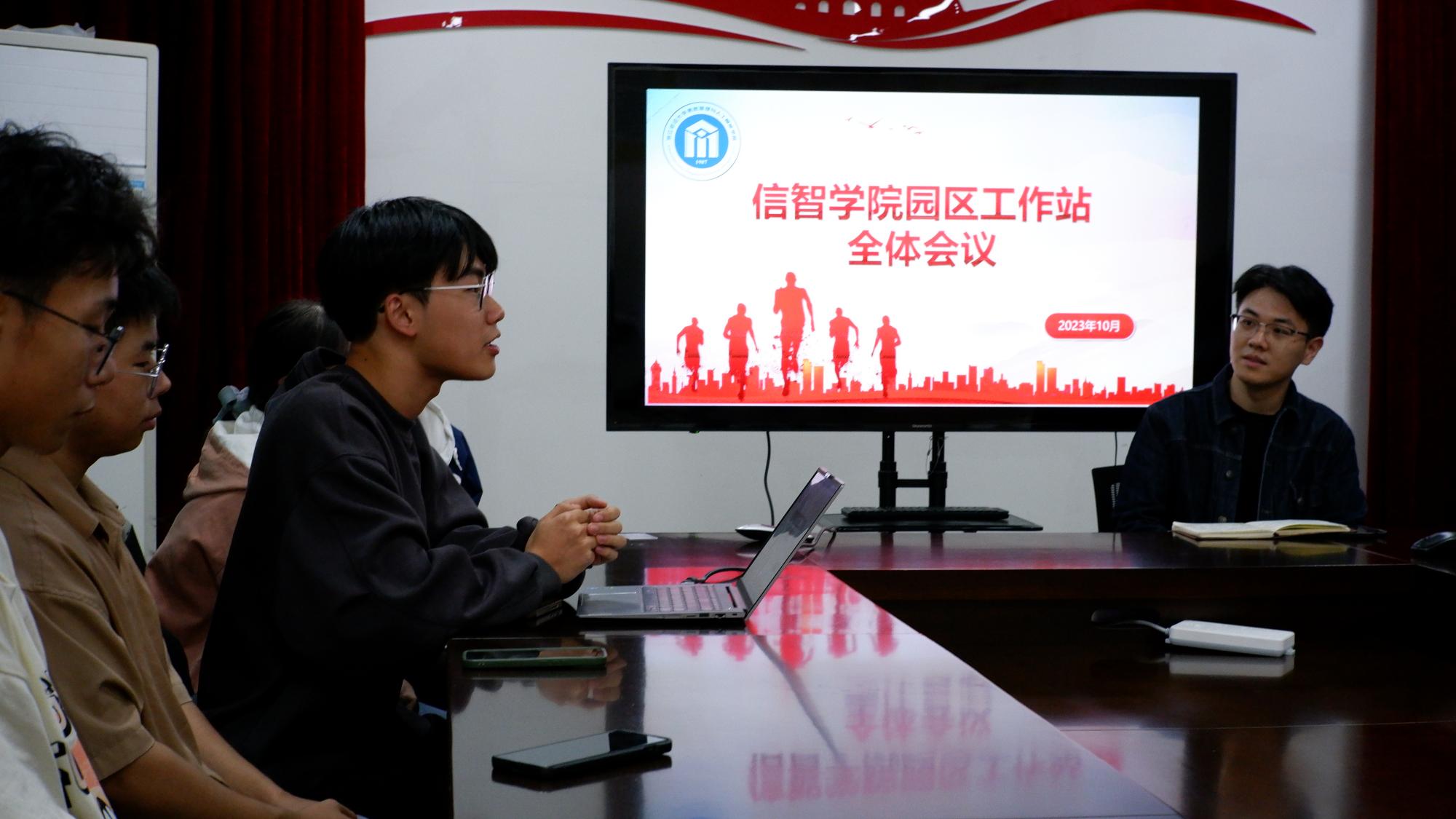 10月10日下午,信息管理与人工智能学院2023-2024学年第一学期园区工作会议于学院楼9506会议室召开。学院园区工作站指导老师洪宝华,园区工作站负责人(秘书长)徐聪琳、俞高杰,工作站各部门部长及新生干事参加此次会议,会议由园区工作站负责人俞高杰主持。